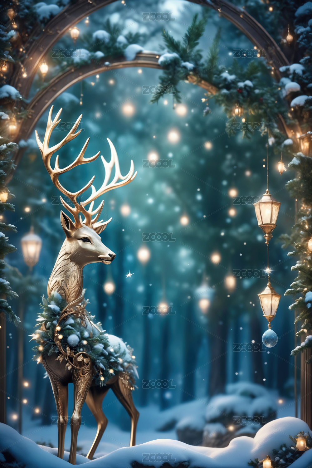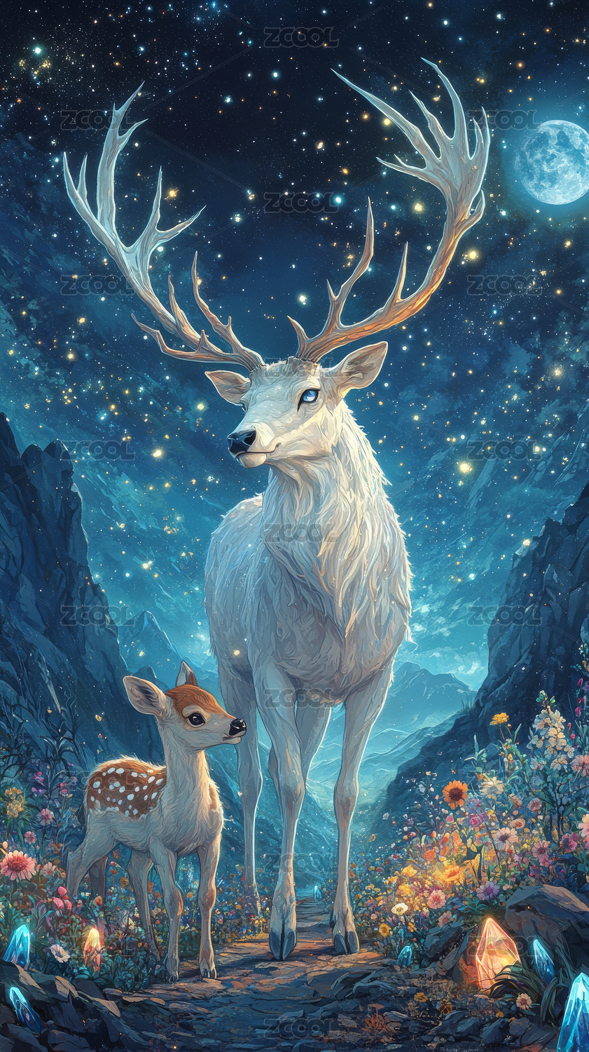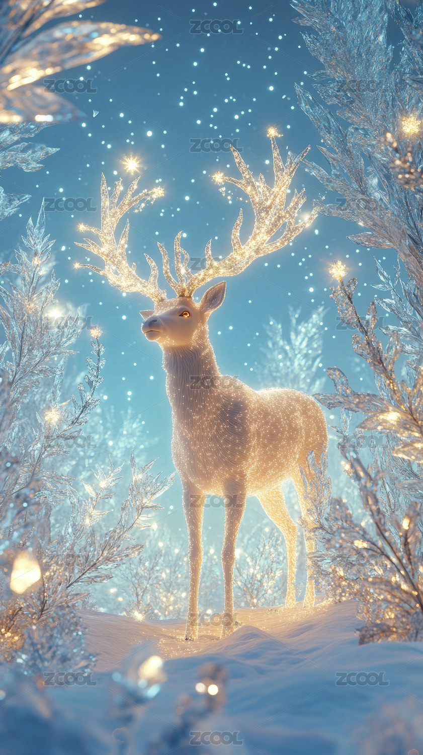 白色, 冬天, 梦幻, 森林, 蓝色, 冷色调, 雪, 自然,雄鹿, 夜晚