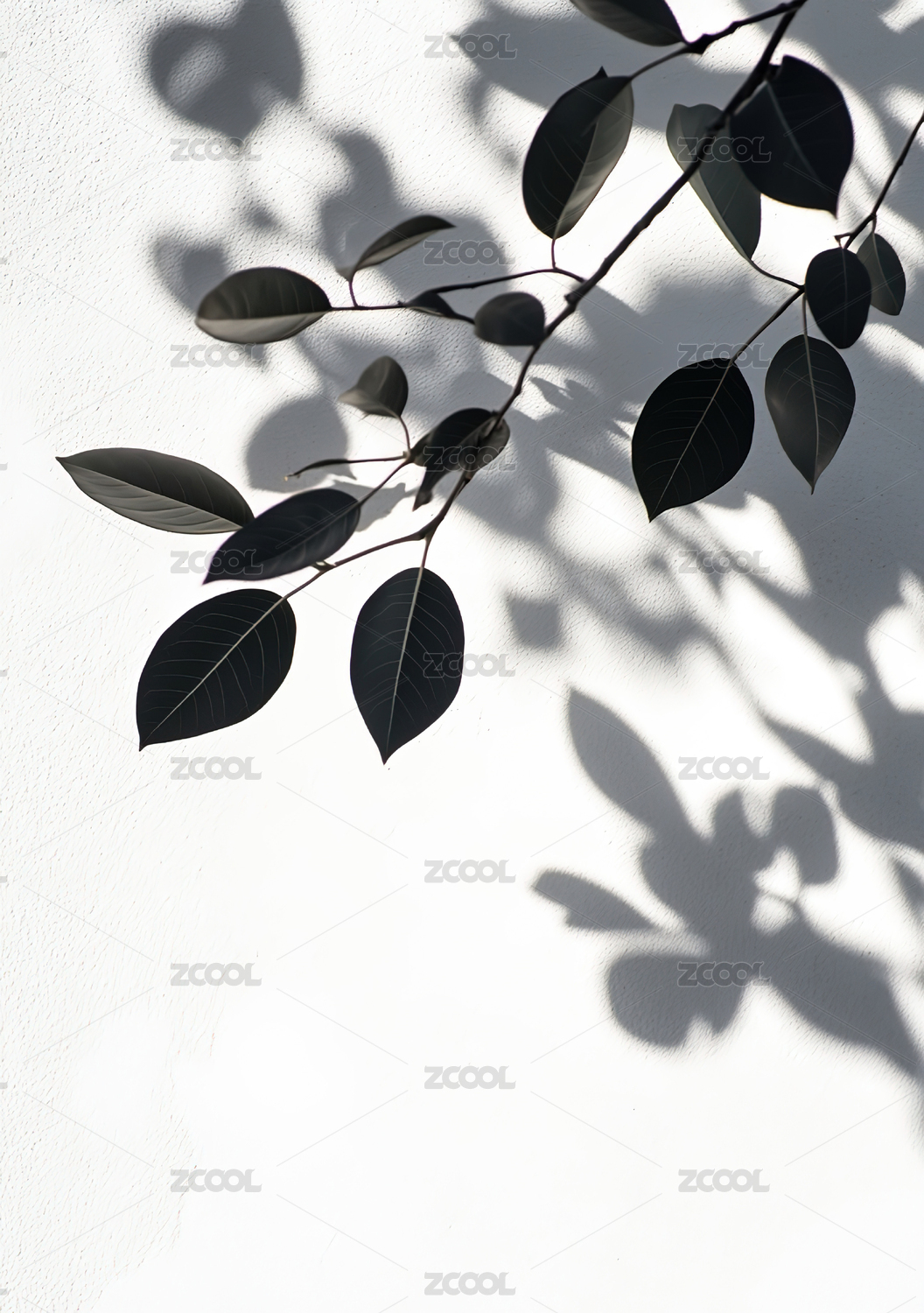 白色墙面上的树枝光影