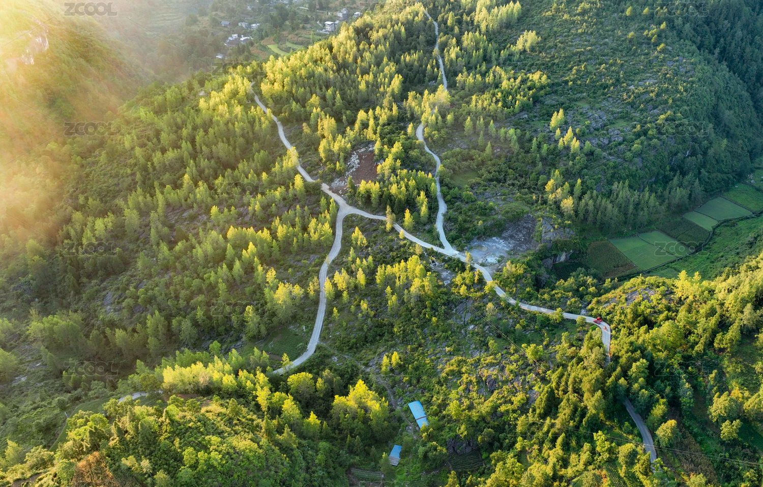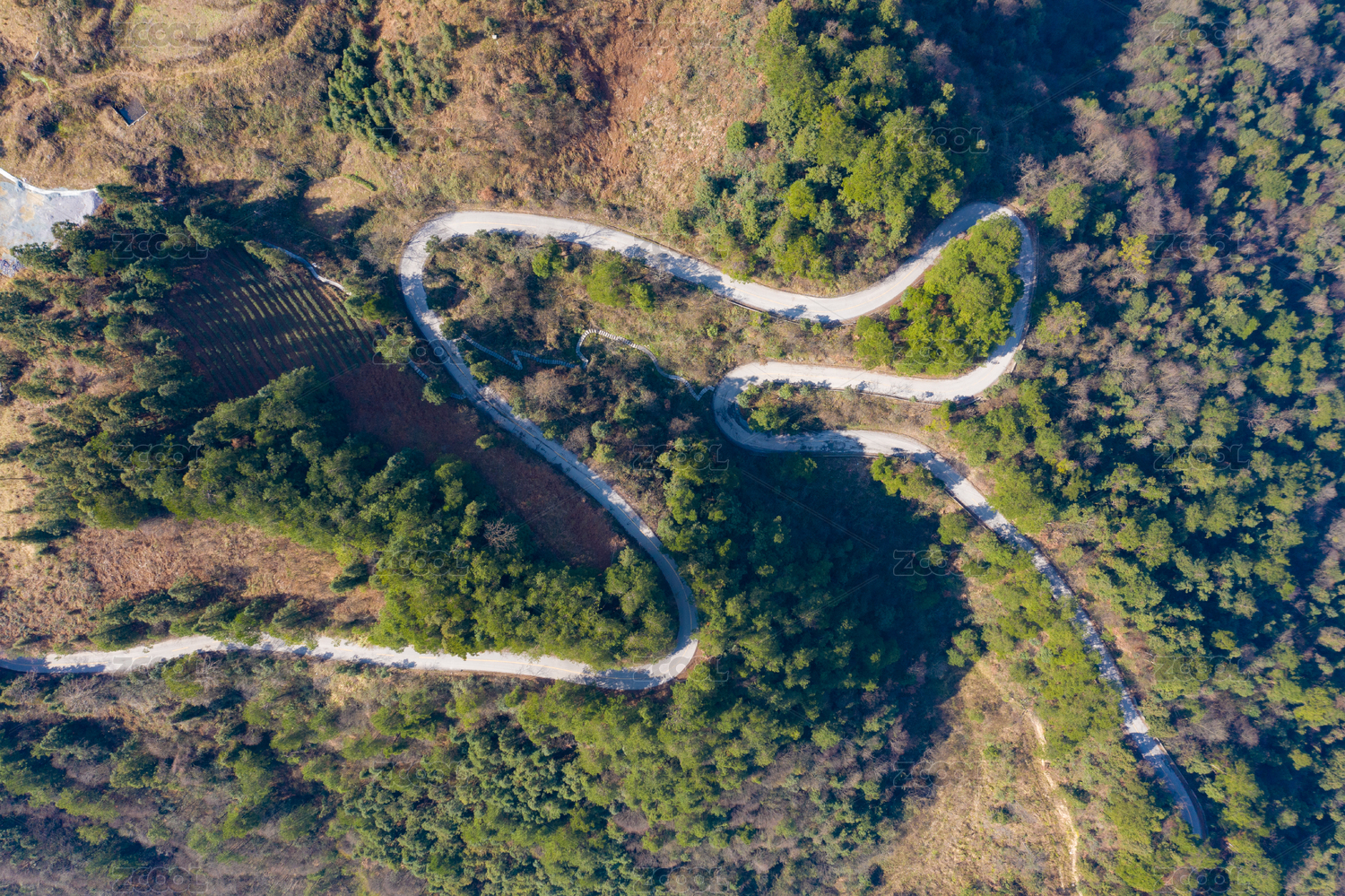 鸟瞰森林环山公路,泰山天外村环山路