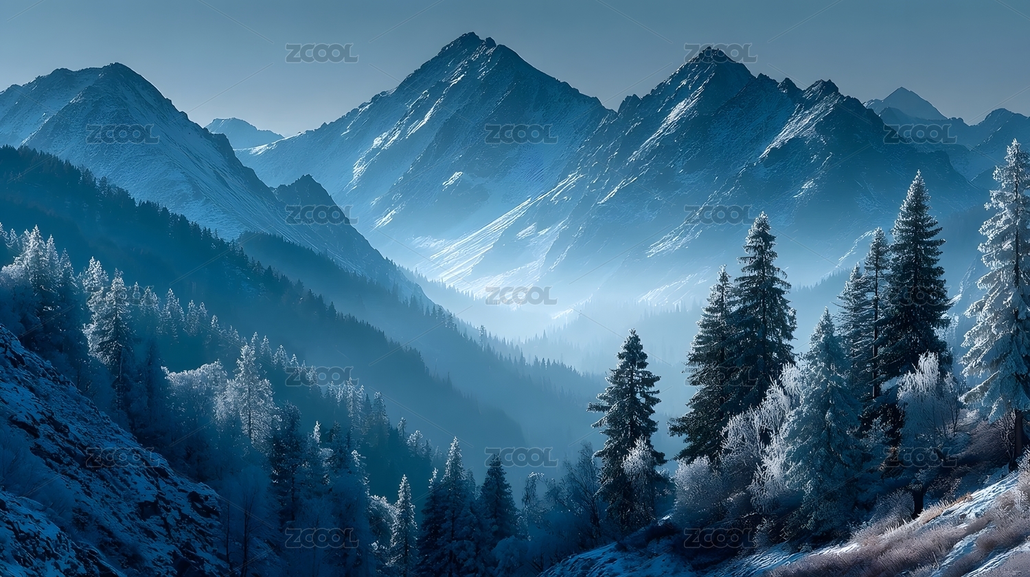 雪山松林冬日景