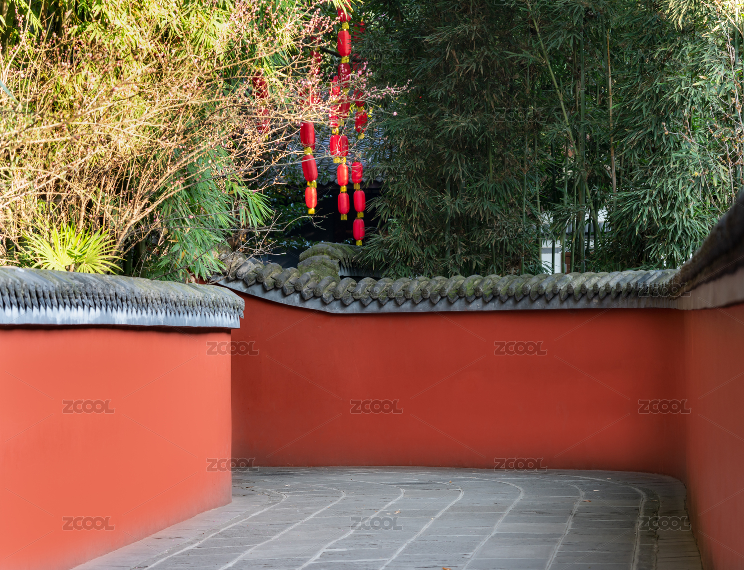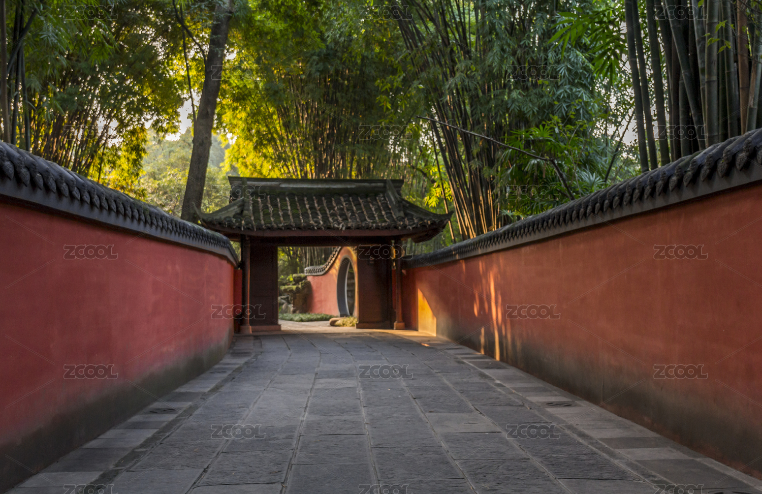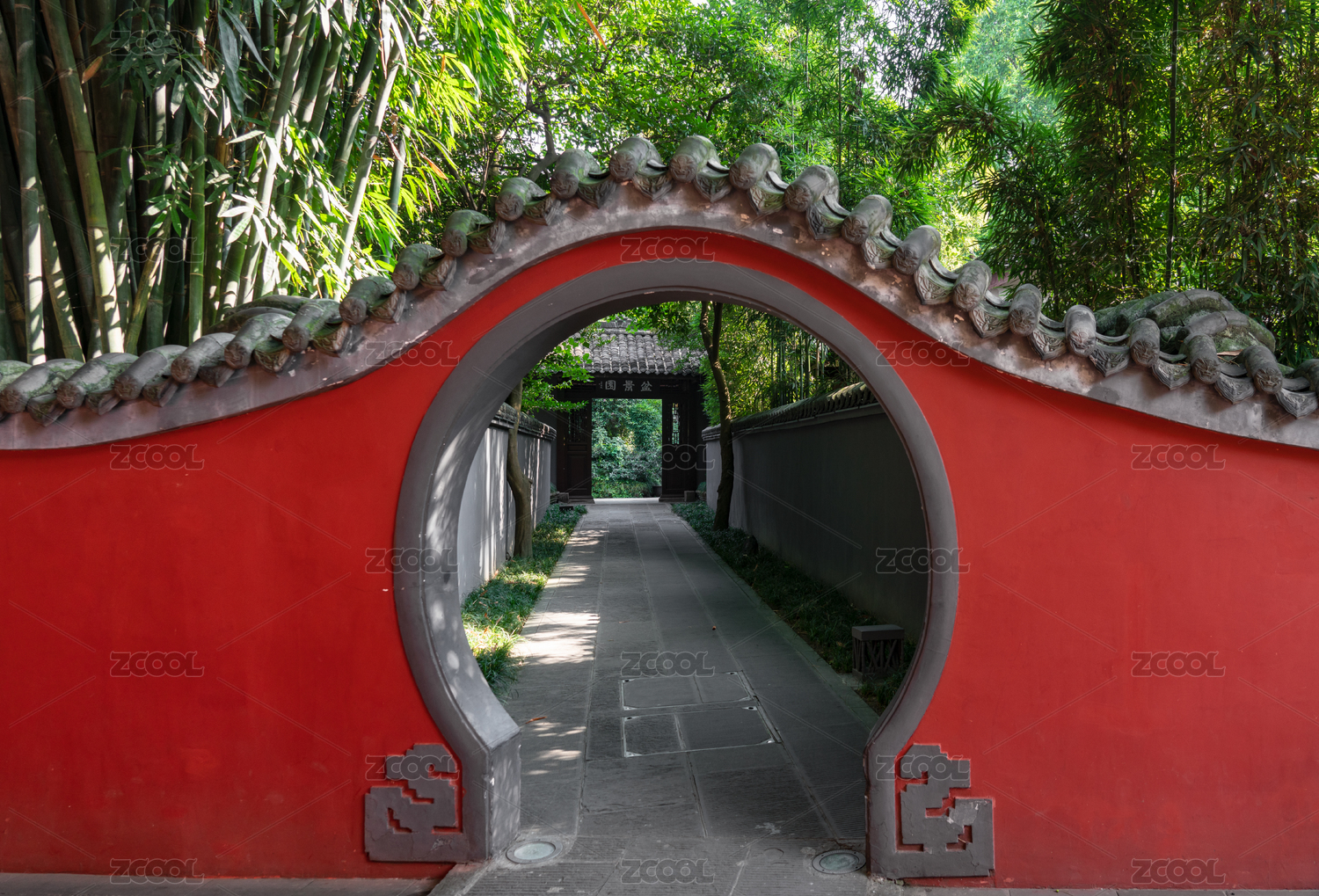 中国成都杜甫草堂博物馆花径竹林与红墙