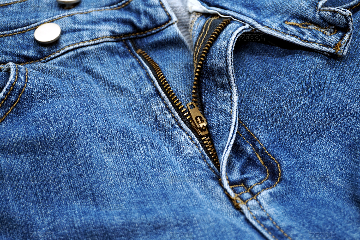 时尚的靛蓝色牛仔裤拉链布料玟理特写