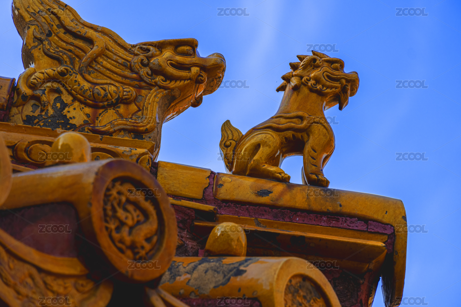 北京紫禁城古建筑飞檐构件琉璃五脊六兽