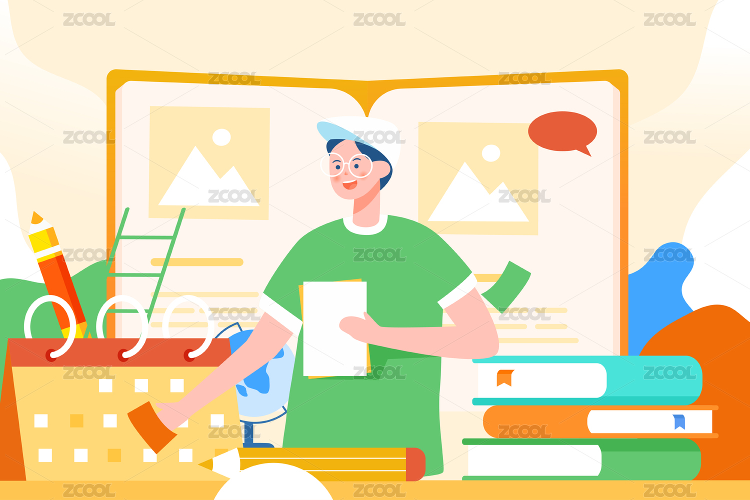 开学季,海报,学生,插画,教育,人物,书本,创意,读书,读书会