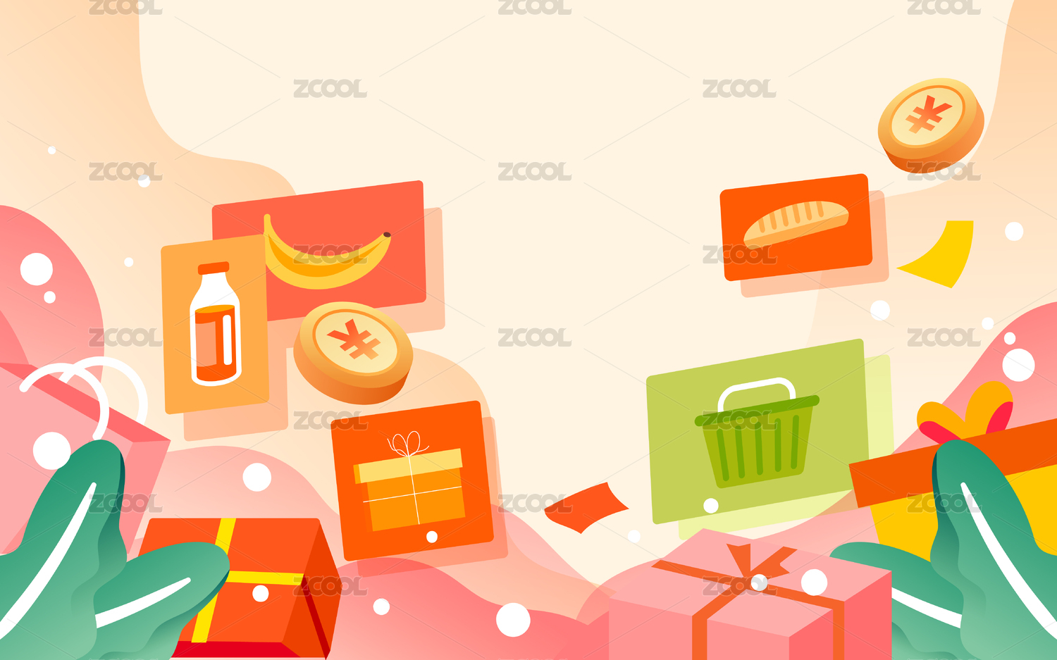 618,购物,打折,超市,背景,扁平,插画,插图,促销,电商