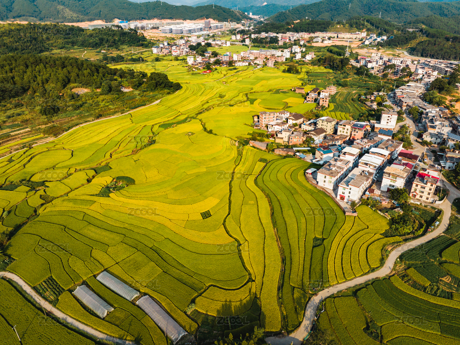 中国,河南,鲁山,小尔城,稻田,美丽村庄,夕阳,收获,丰收