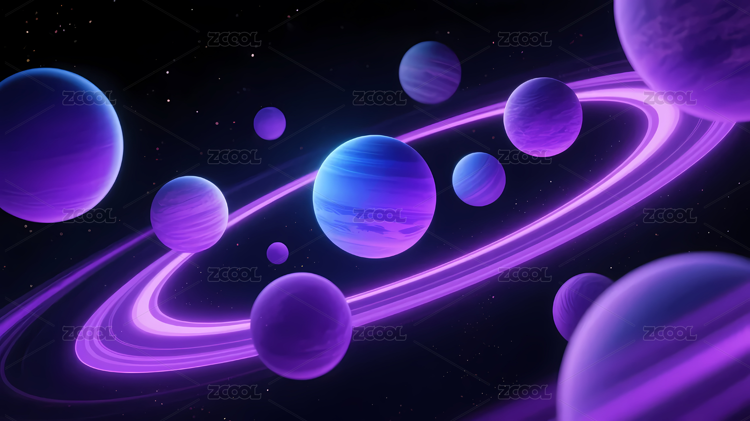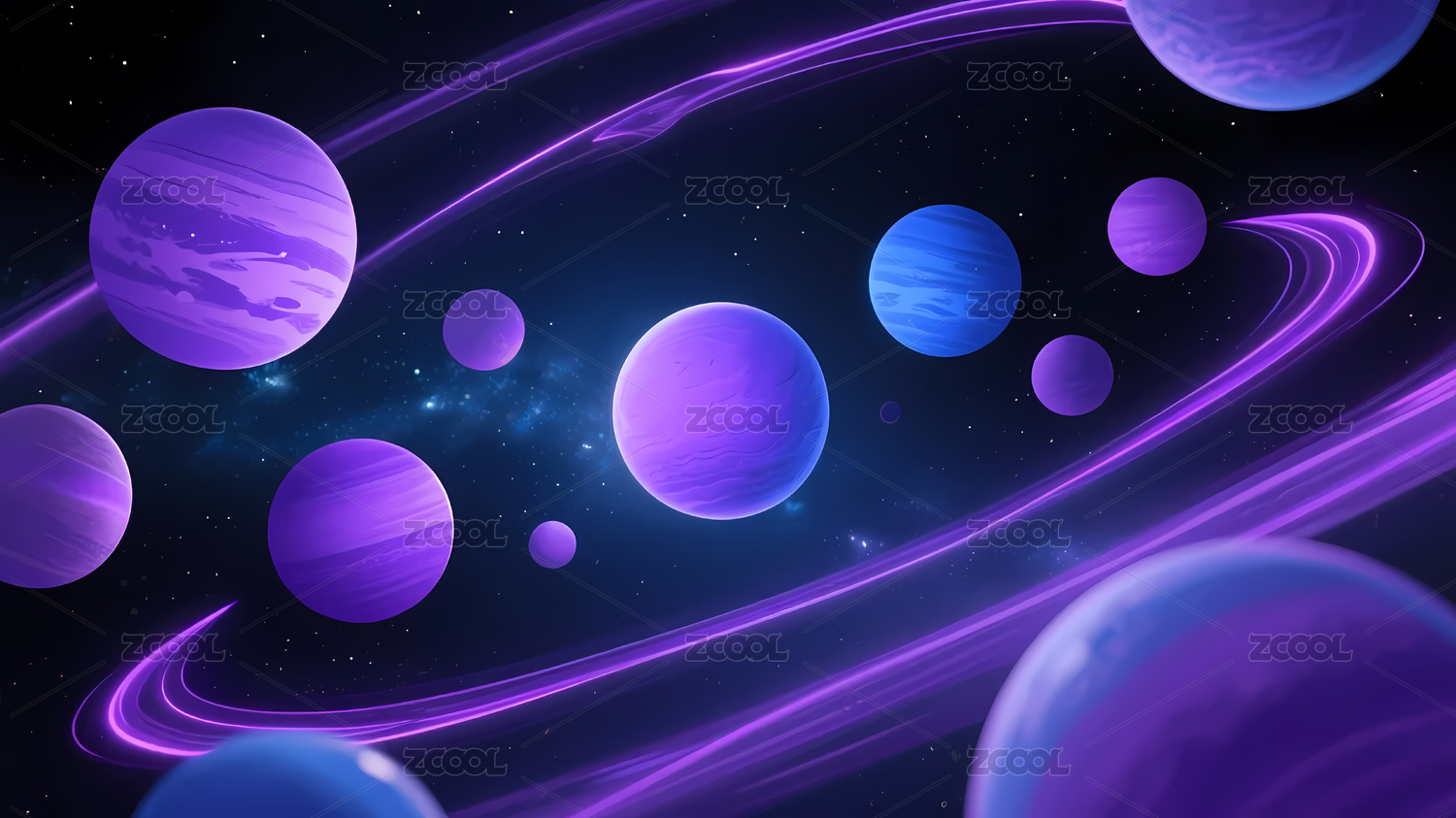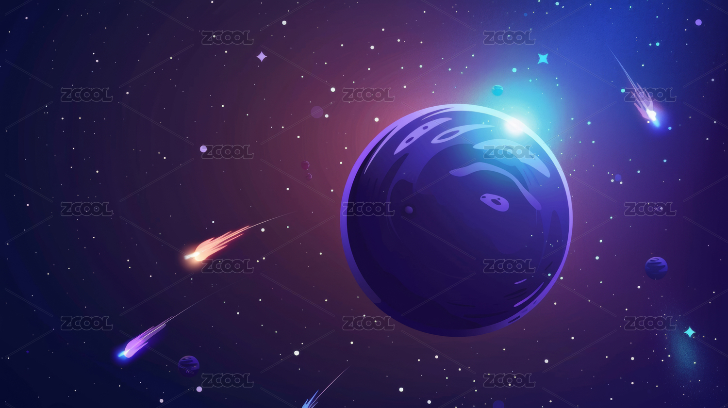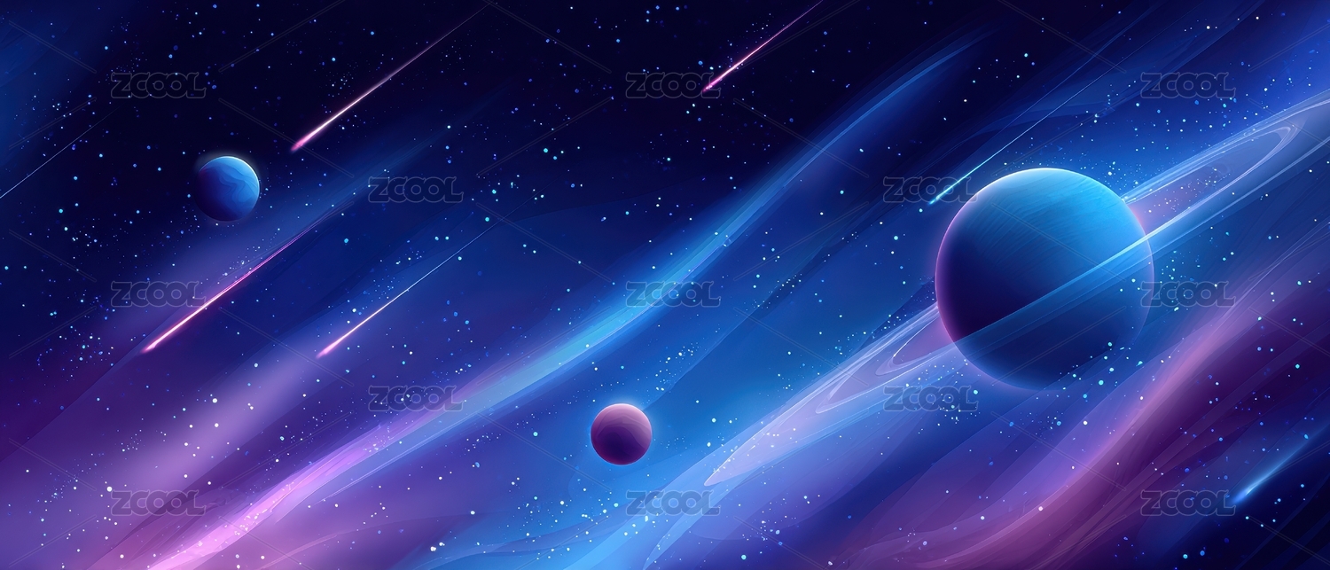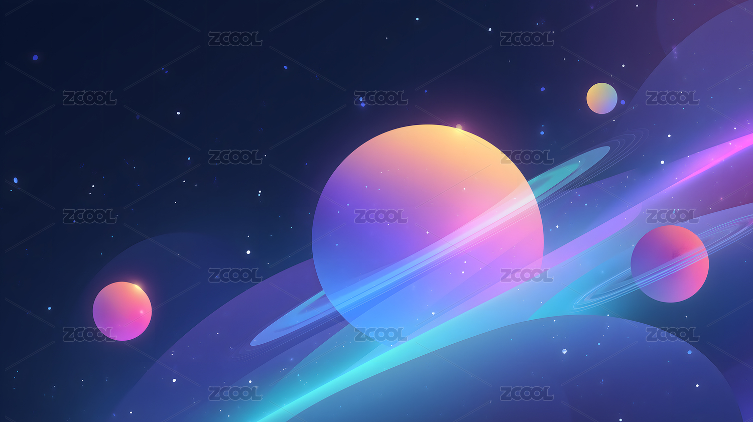 深蓝色背景上渐变星球和太空,卡通行星背景