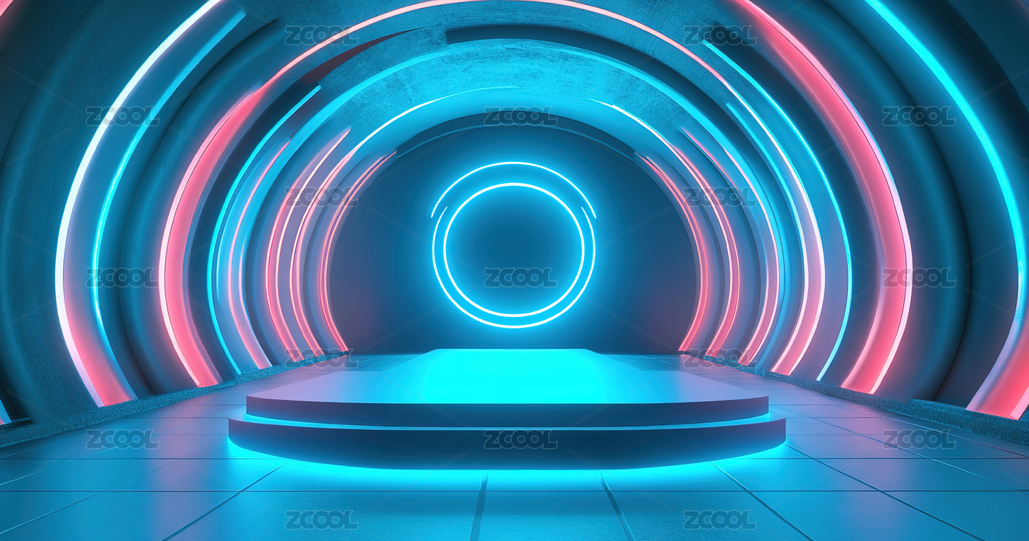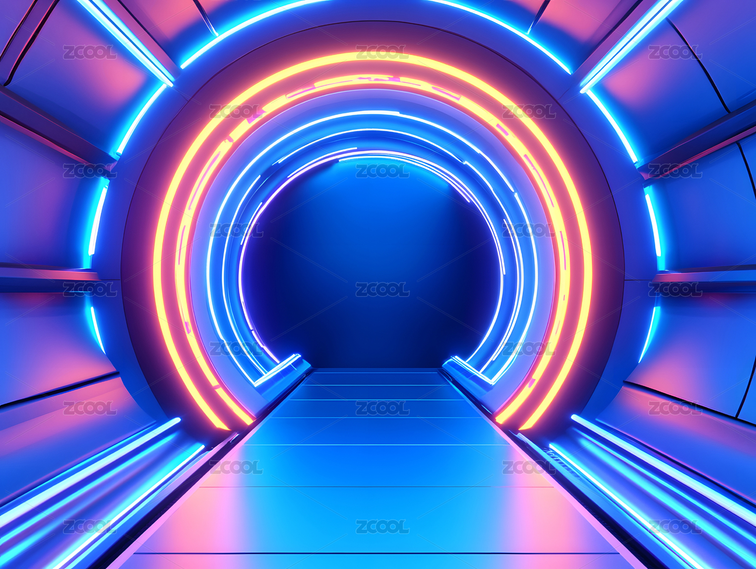 3D渲染科幻几何隧道霓虹灯线概念插图