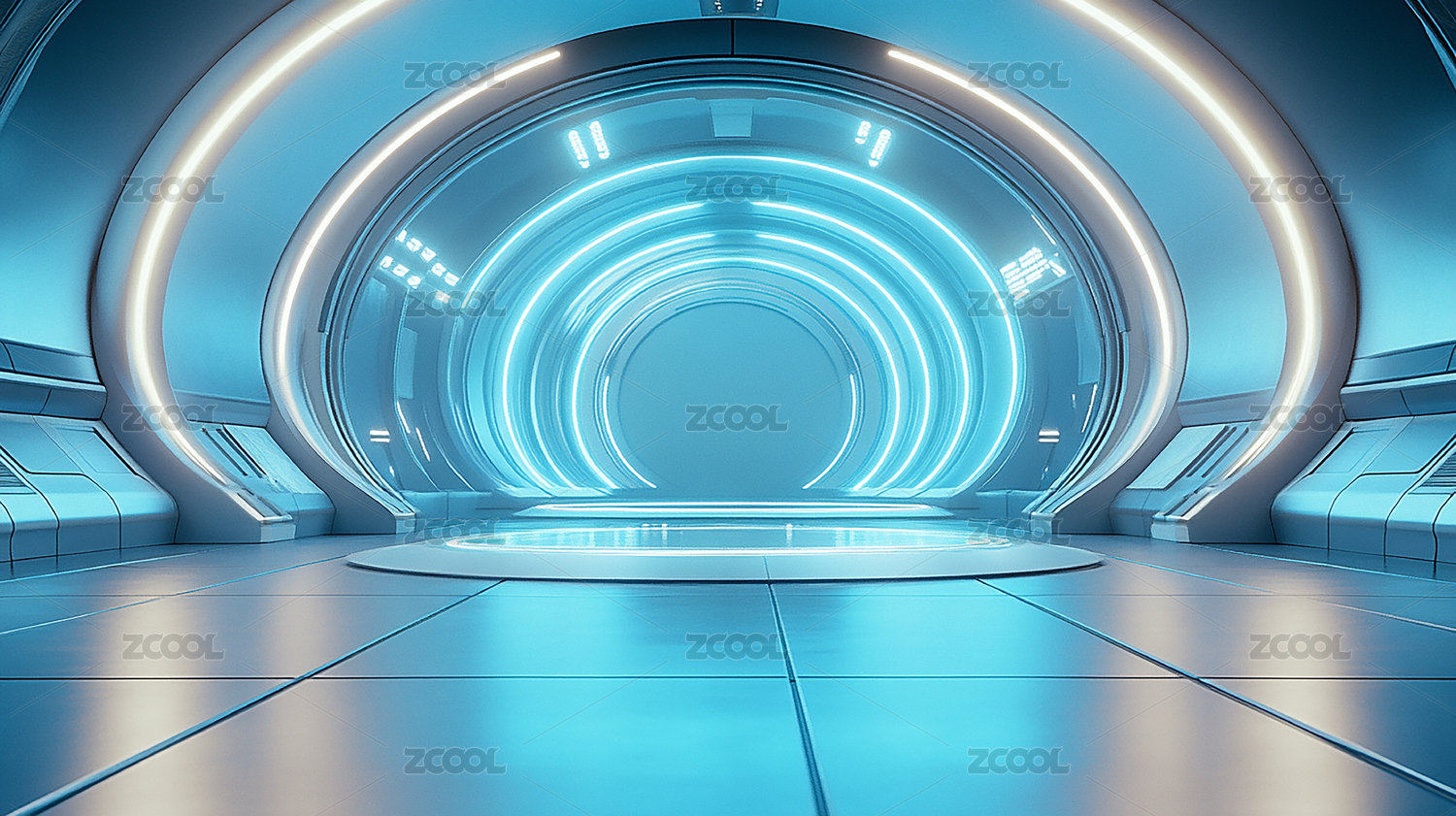 3D渲染科幻延伸空间站飞船走廊隧道背景