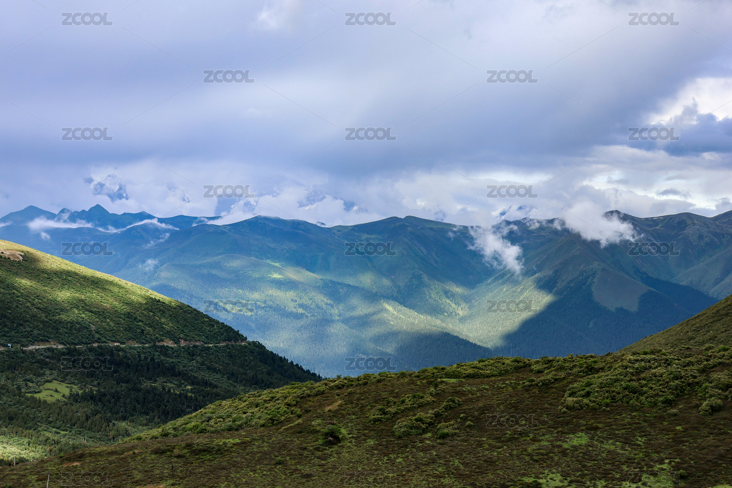 绿色山脉和云