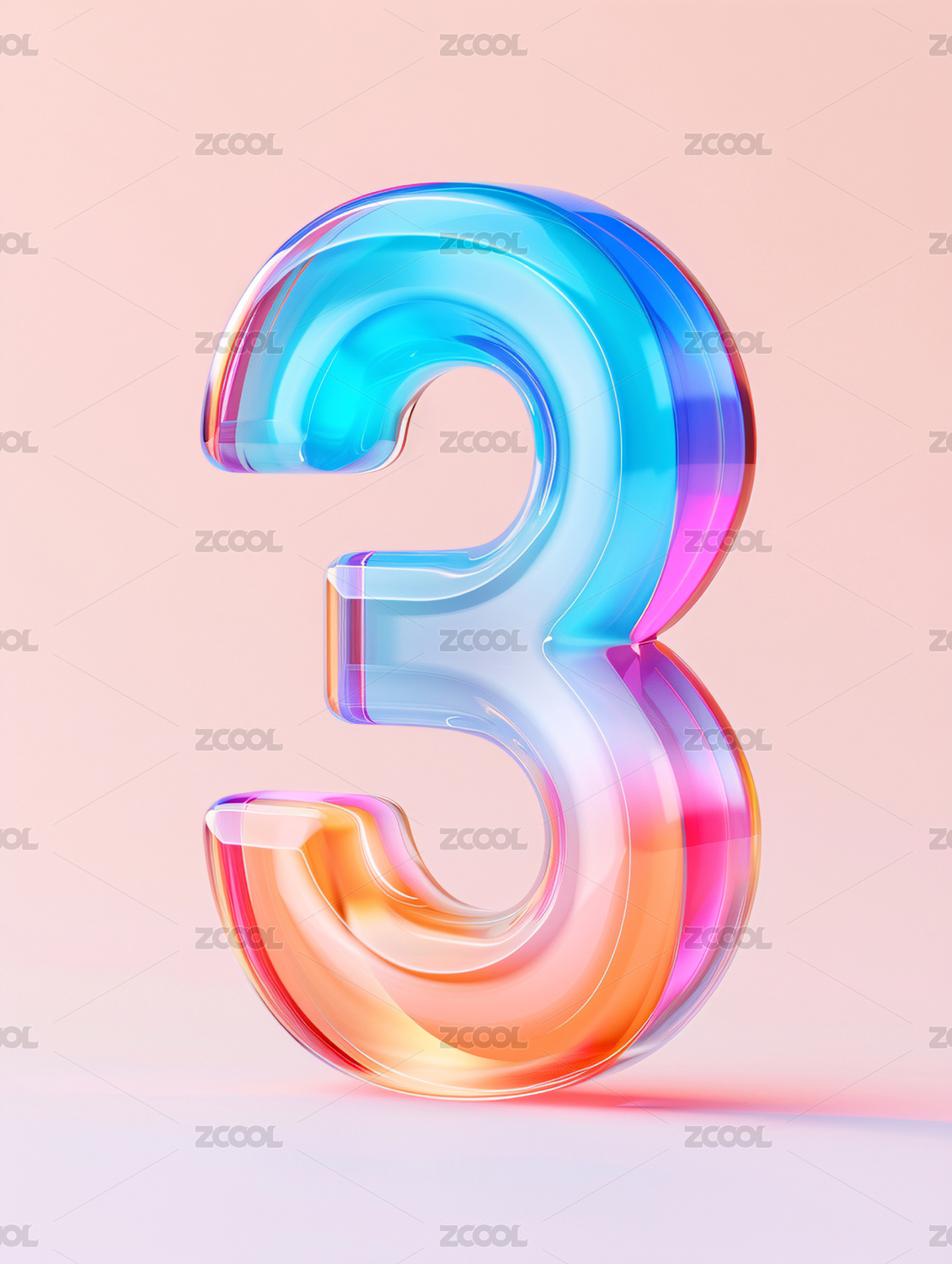 倒计时数字3三维插画