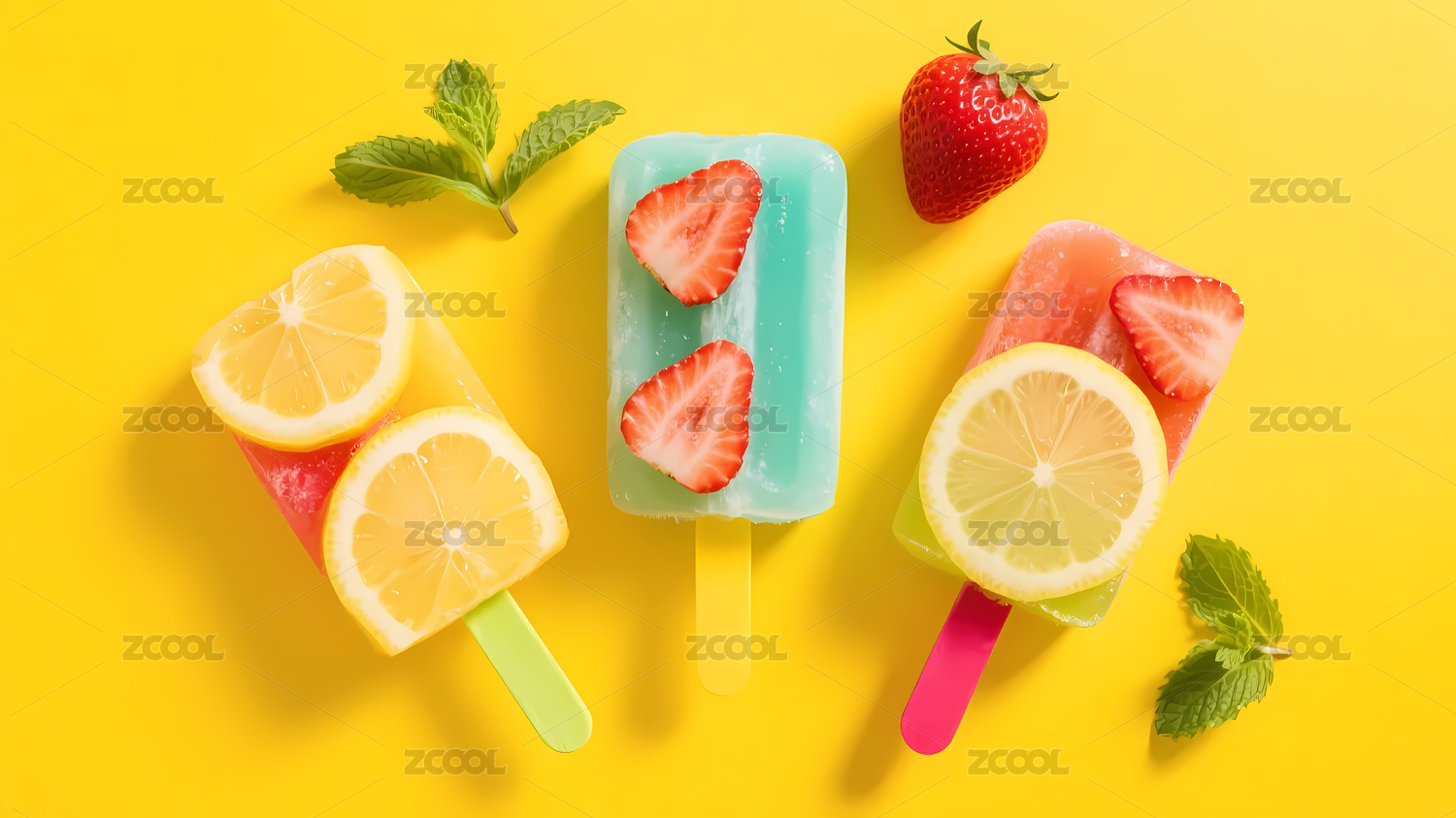 水果冰棒柠檬顶视图夏天冷饮健康水果插图