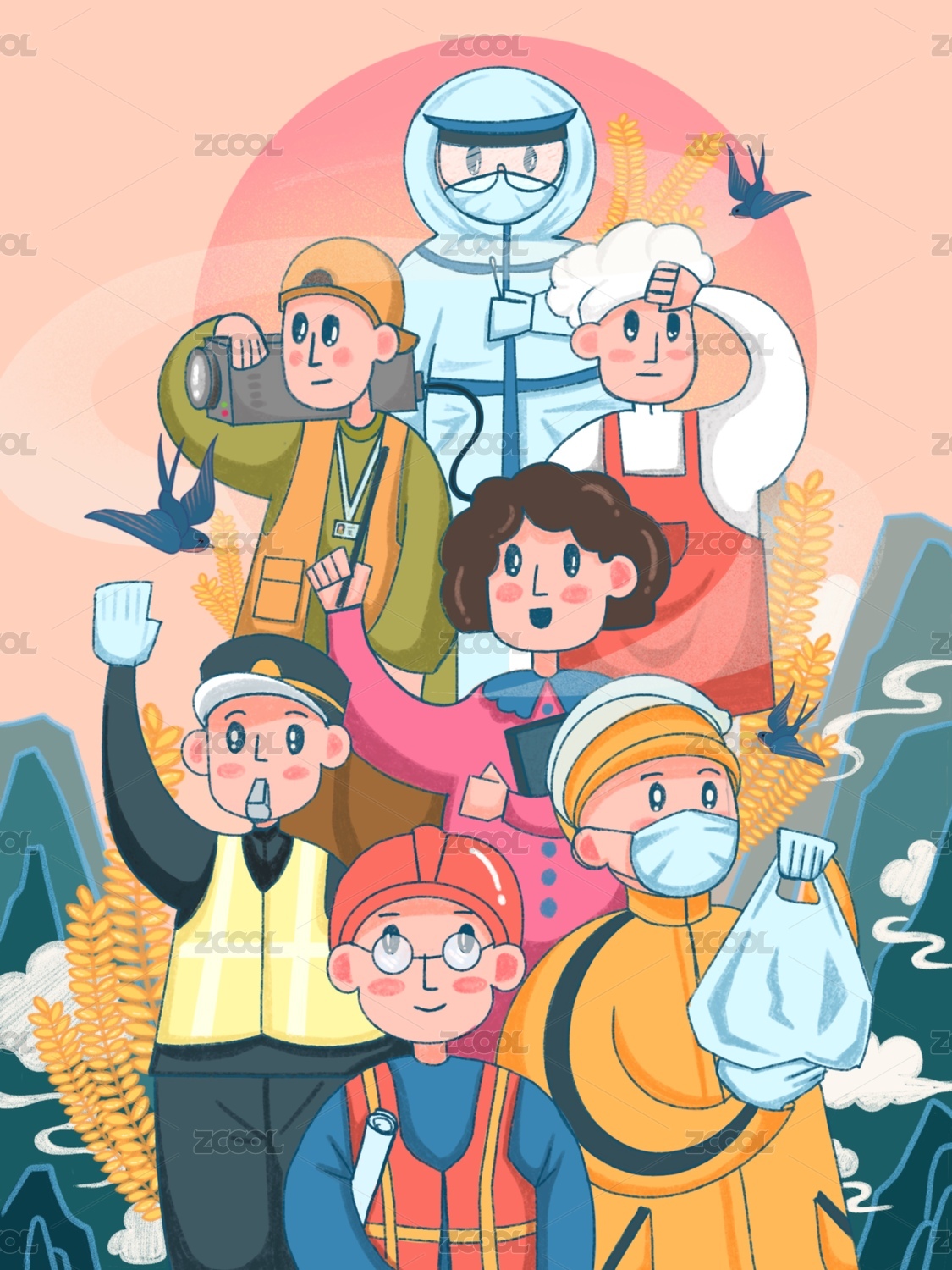 五一劳动节各种职业人物插画