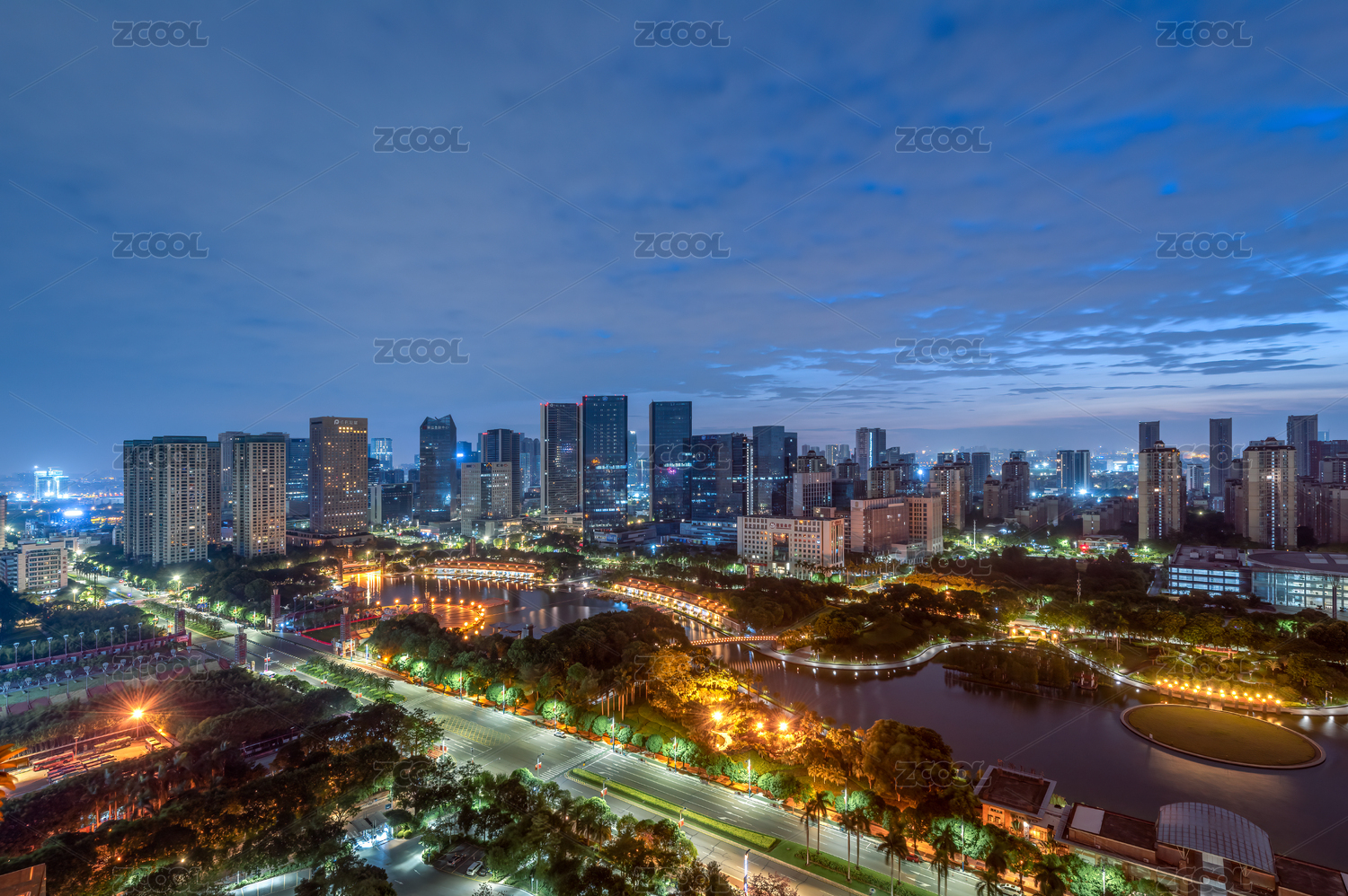 广东佛山南海千灯湖金融高新区城市风光夜景