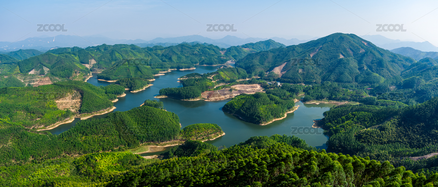 中国广西梧州蒙山茶山水库生态景观自然风光