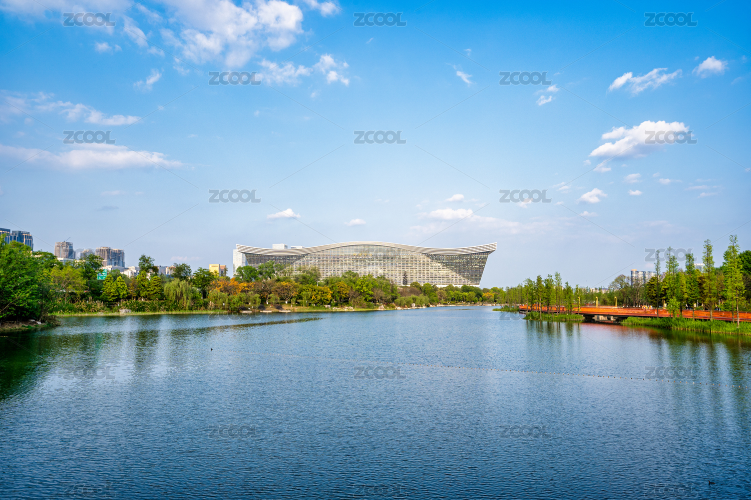 成都,城市,建筑,湖泊,环球中心,锦城公园