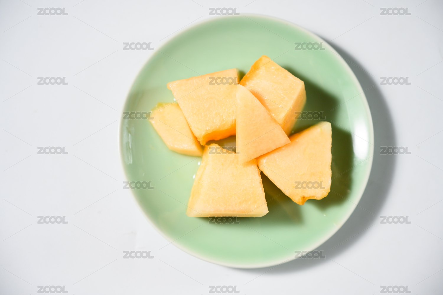 桌面上的盘子里的美味可口的哈密瓜肉