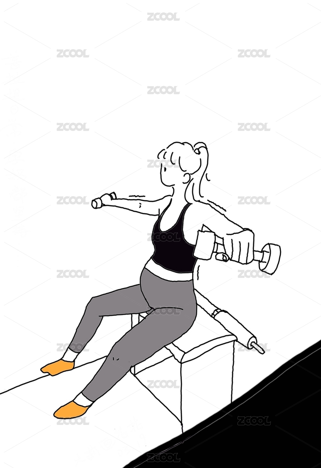 瑜伽体态修心姿态运动线条绘画