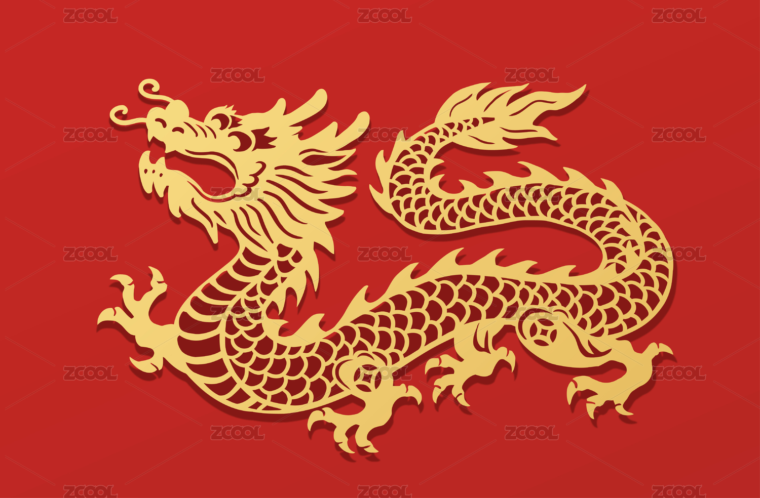 红色背景下的龙和龙