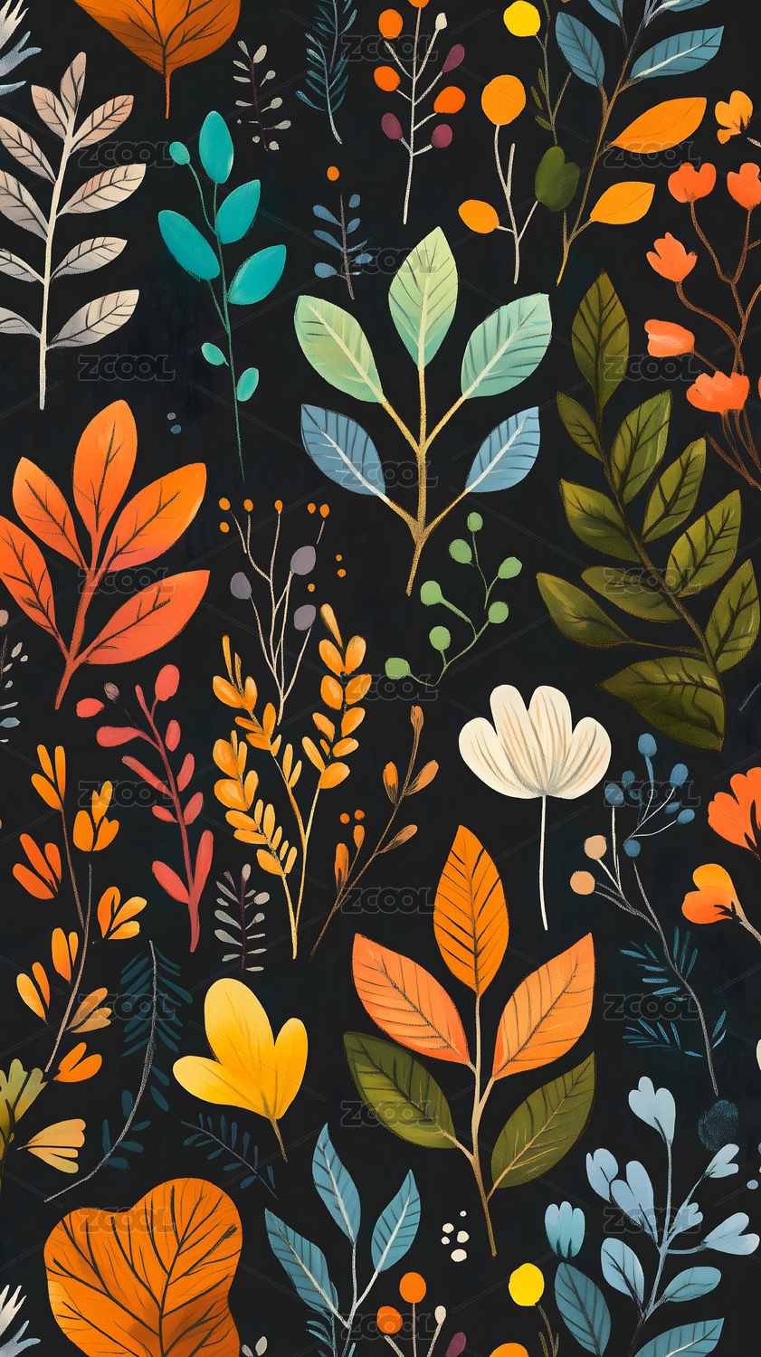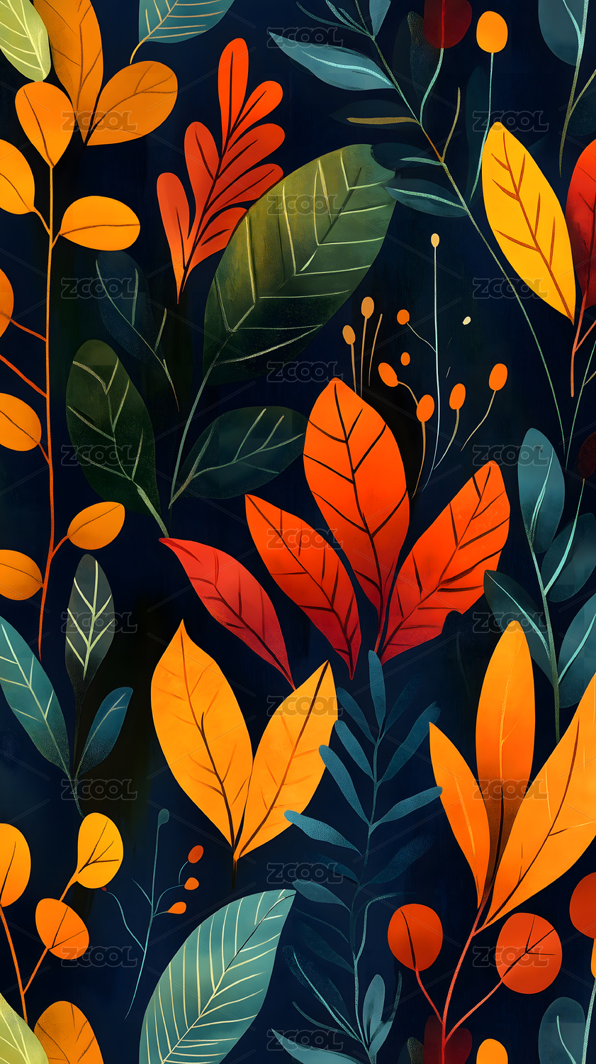 绿叶,绿植,平面,竖屏,背景,壁纸,黄色,绿色,简约,线条