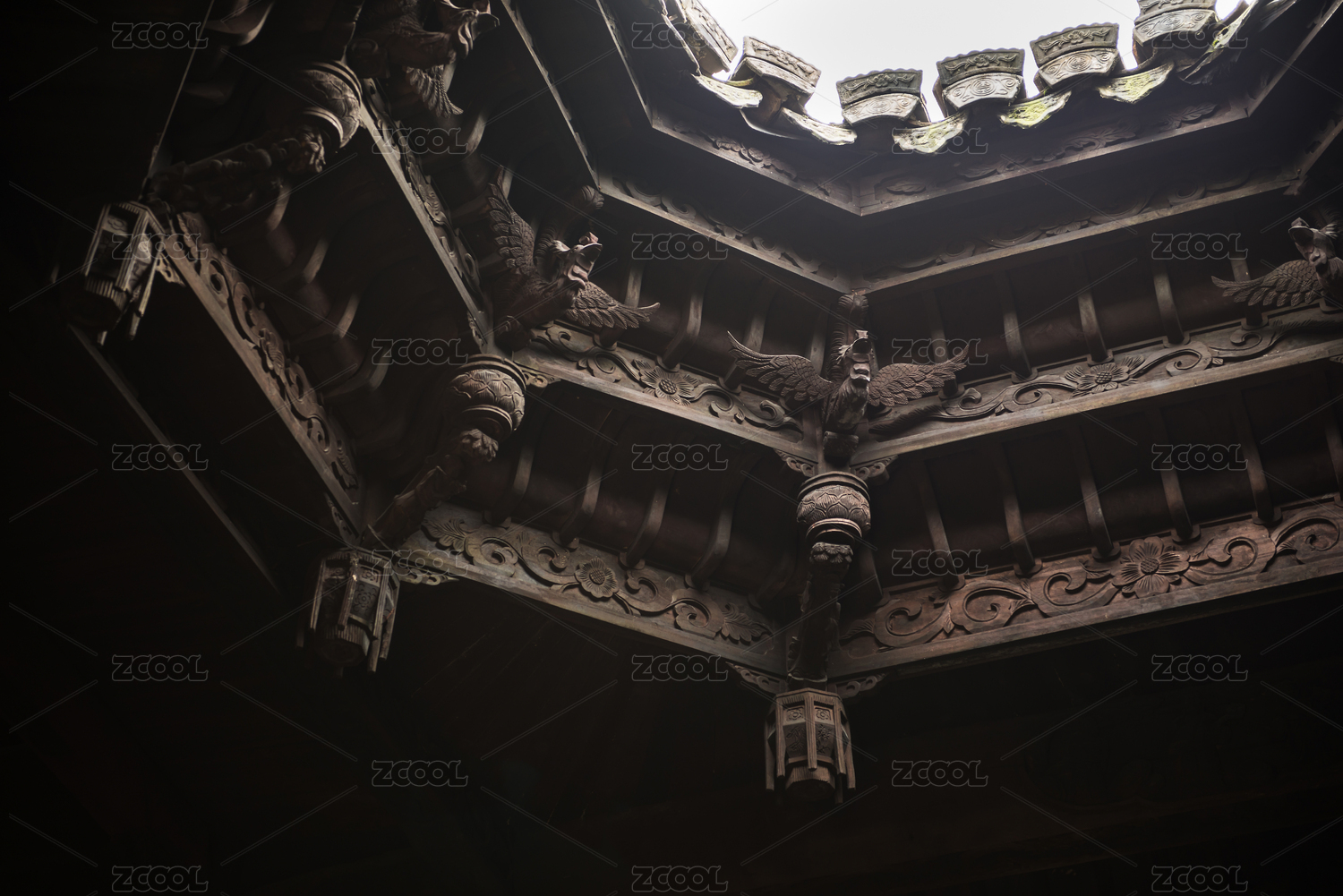 中国,上海,松江区,佘山镇,街心花园,仿古,建筑,凉亭,屋顶,内部