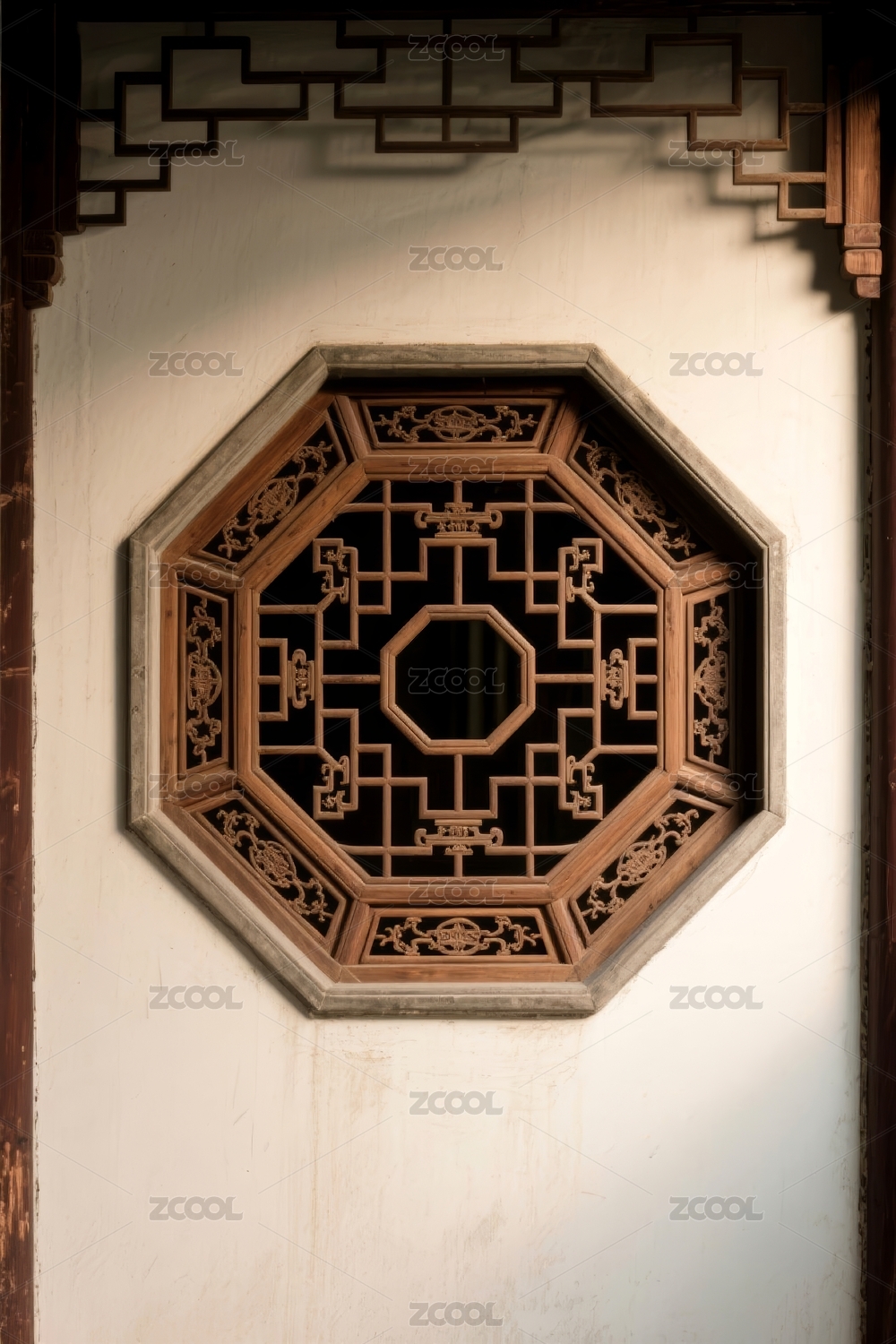 中式房屋外翠色的千层金依偎在黑瓦花窗旁