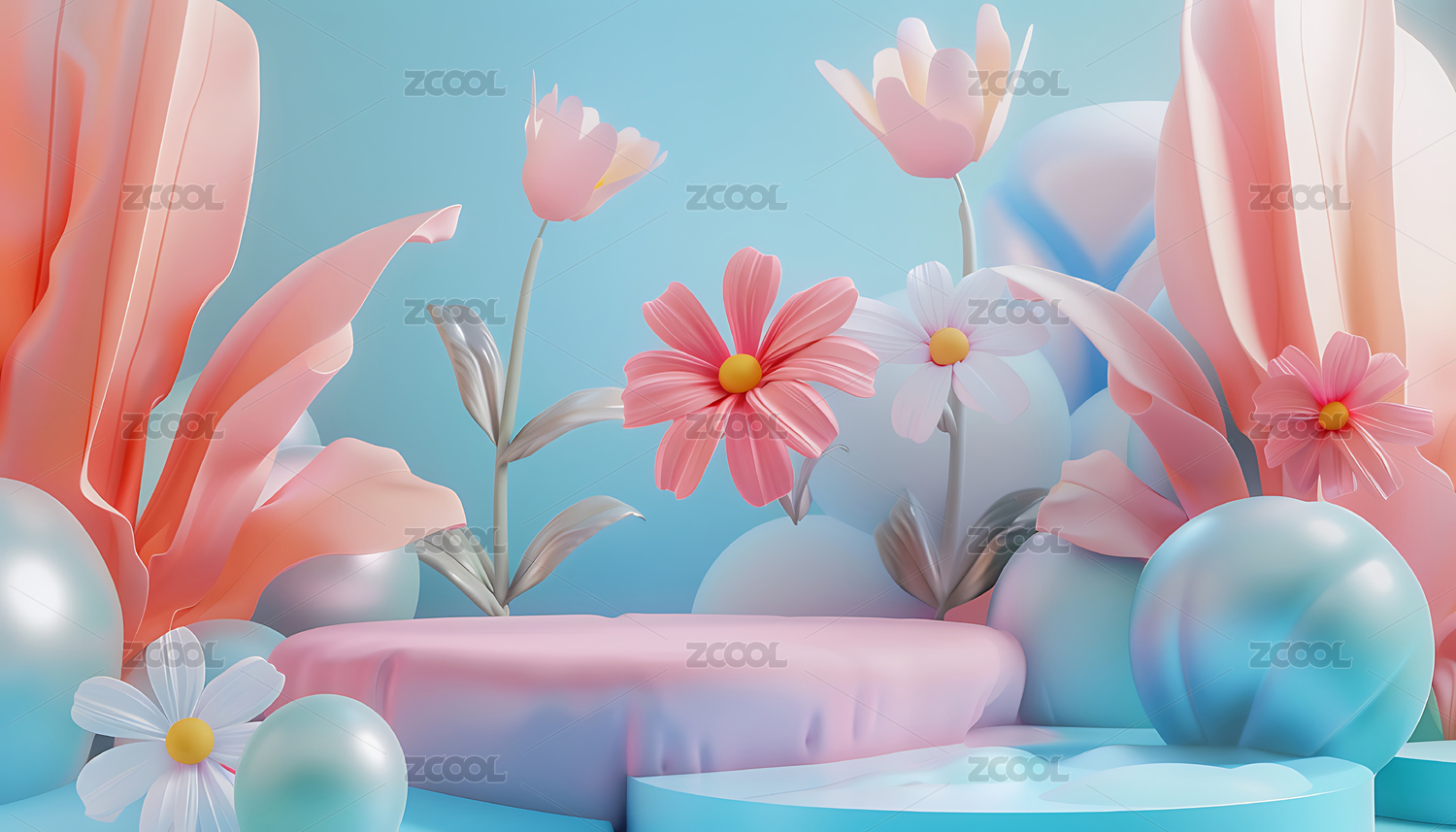 壁纸,花朵,郁金香,艺术,背景,蓝色,粉色,阳光,3D,圆球