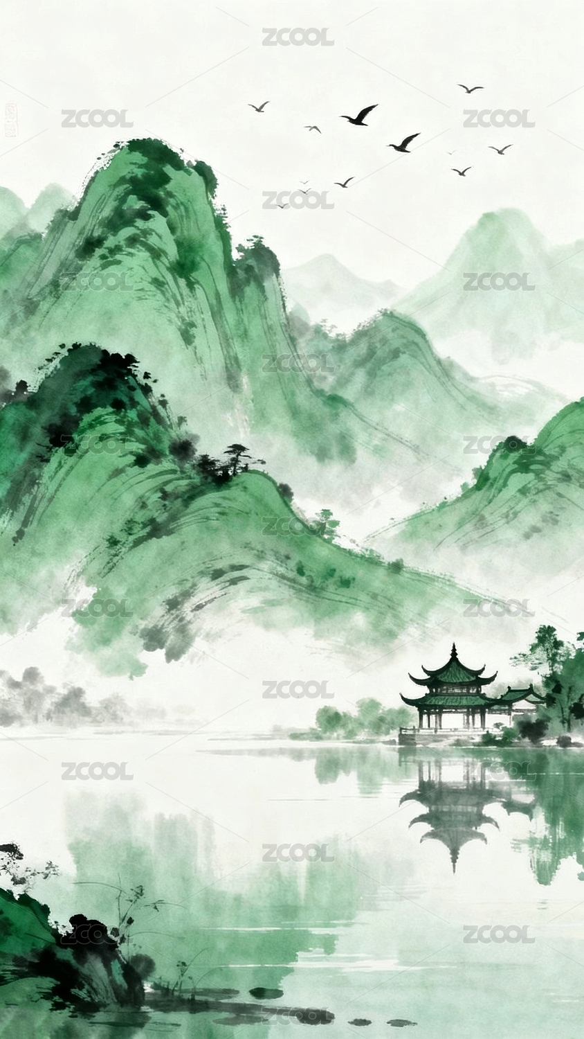 水墨江南山水画 新中式水墨山水 新中式山 水意境山水