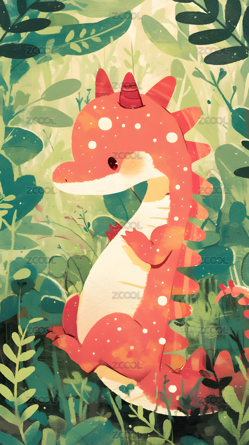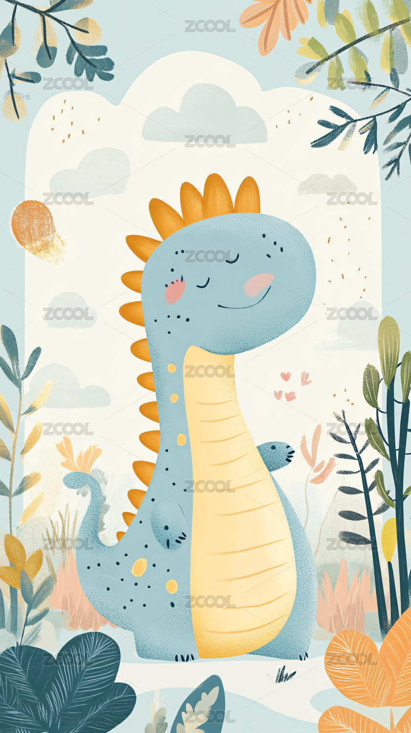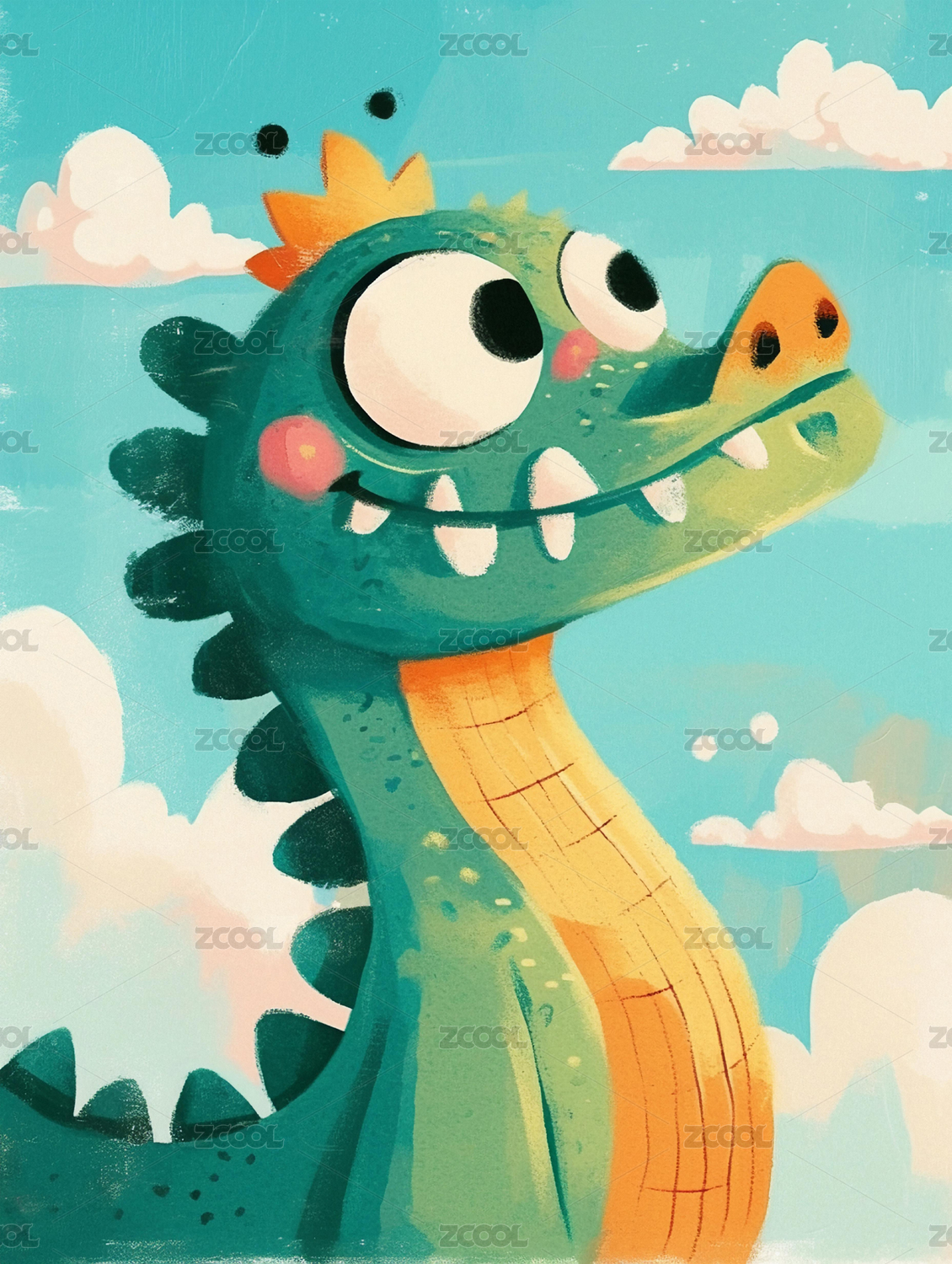 科幻卡通一只昂首爬行威猛可爱的恐龙插画