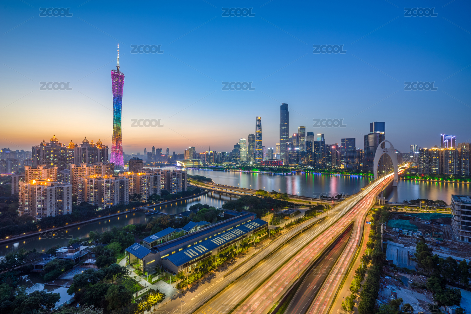 广州高视角城市天际线,广州塔、猎德大桥、珠江新城 城市风光