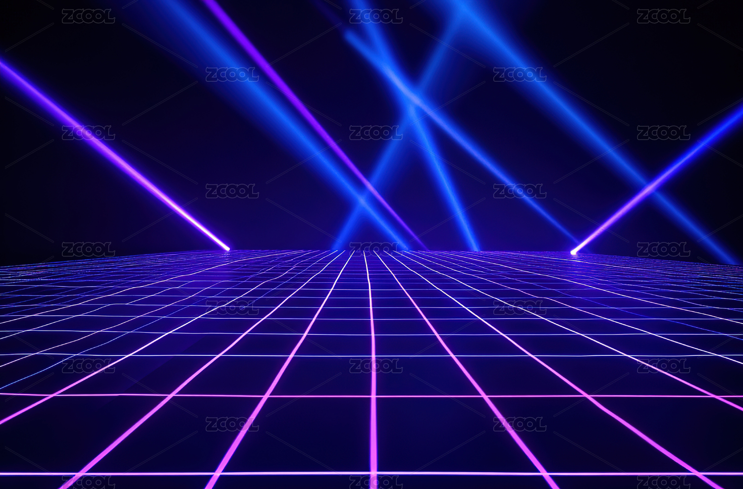 紫色星空下的蓝色网格地面