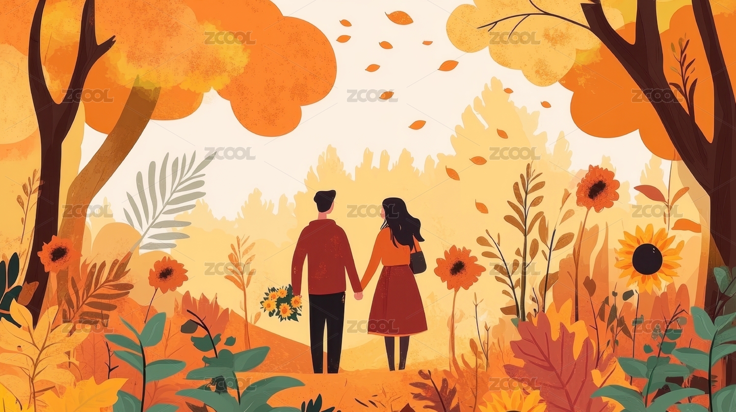 秋天秋游立秋秋分户外活动运动卡通漫画插画