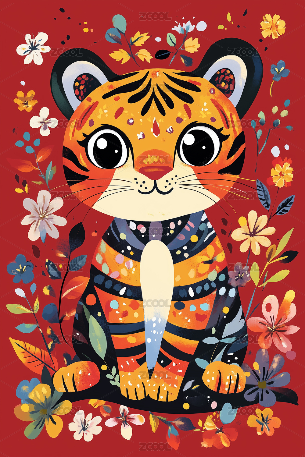 生肖虎民族风精美插画