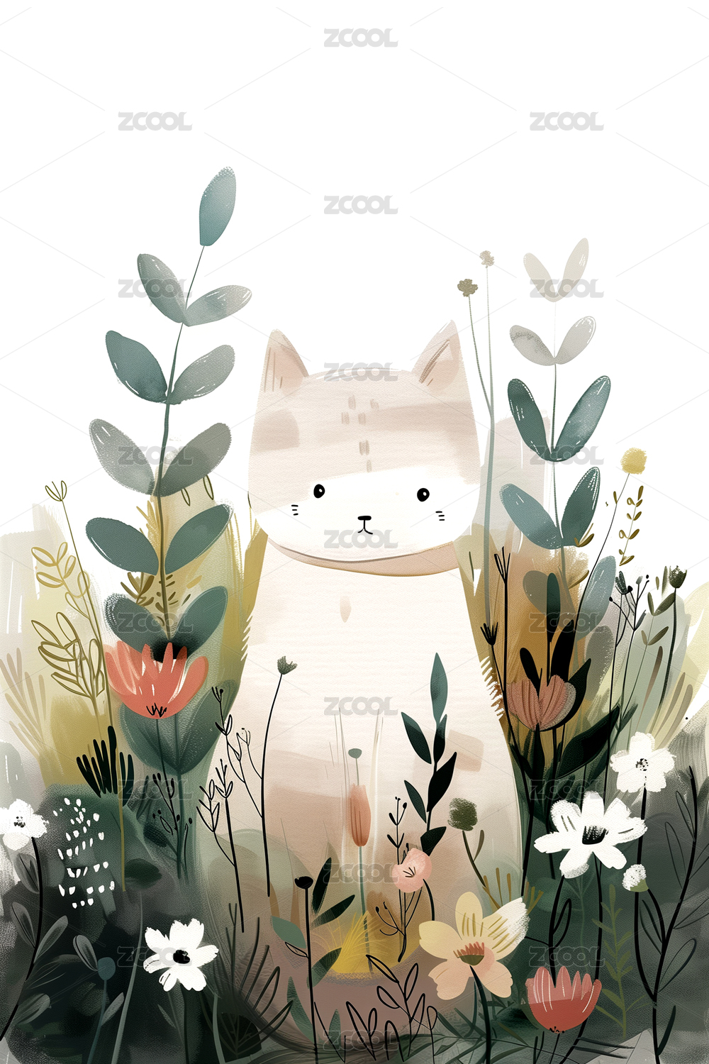 绘本风可爱动物小猫咪插画