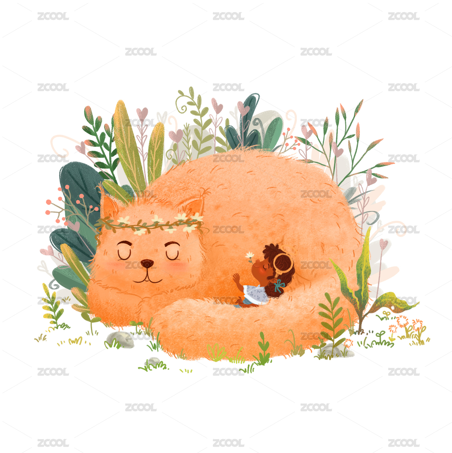 包装插画,清新,HEYYTIC2020,绿植,花朵,红花,树叶,动物,猫咪,小熊