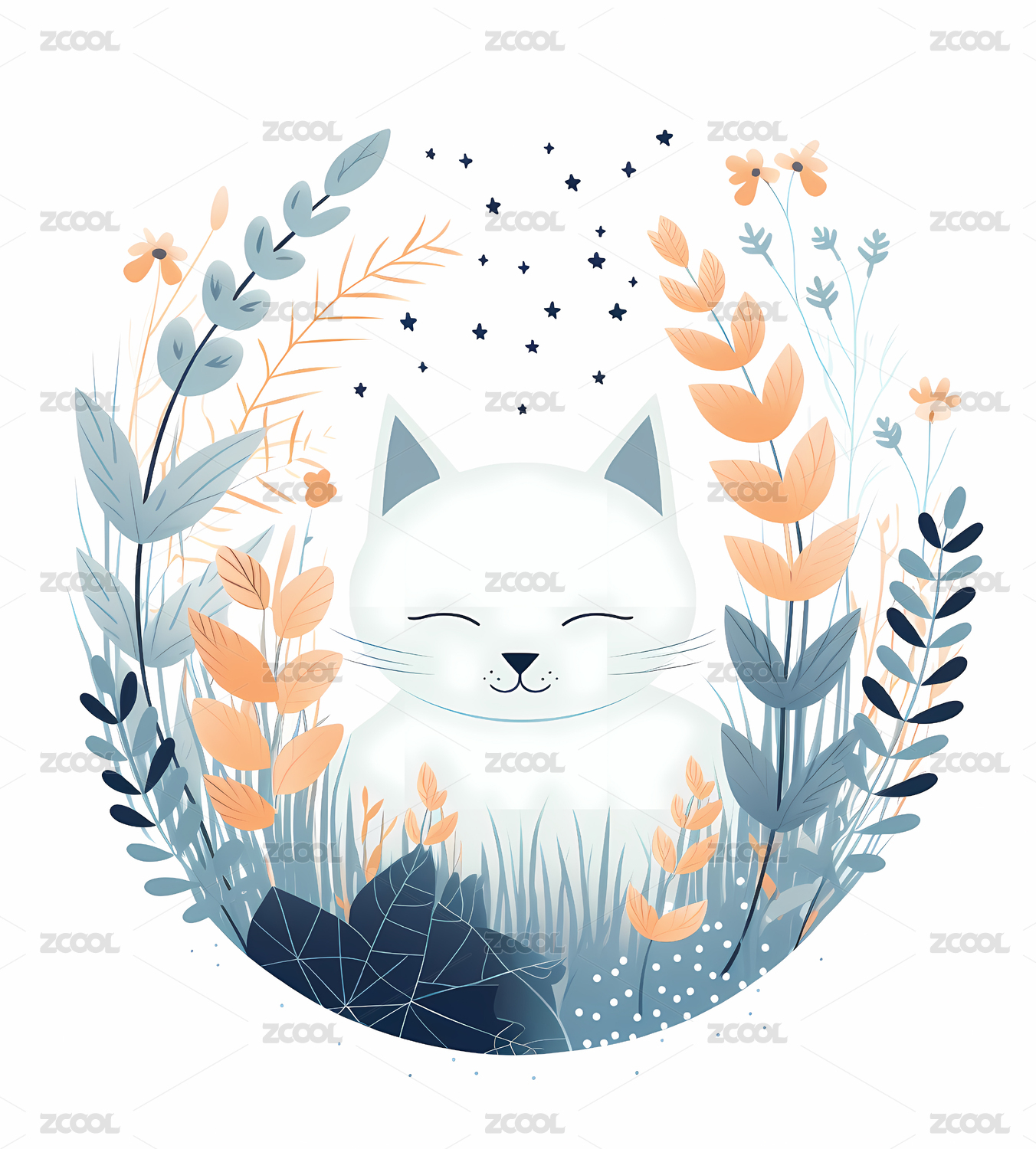 花中小猫卡通插画