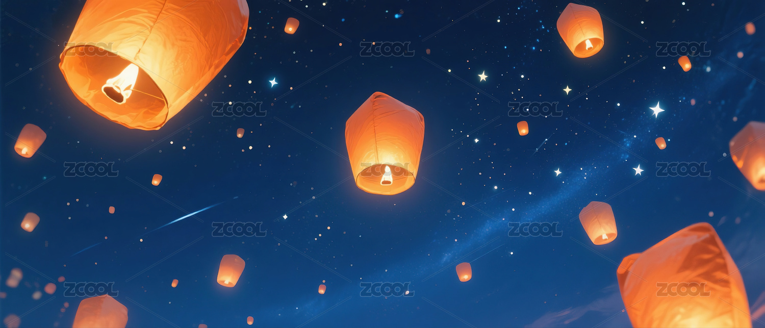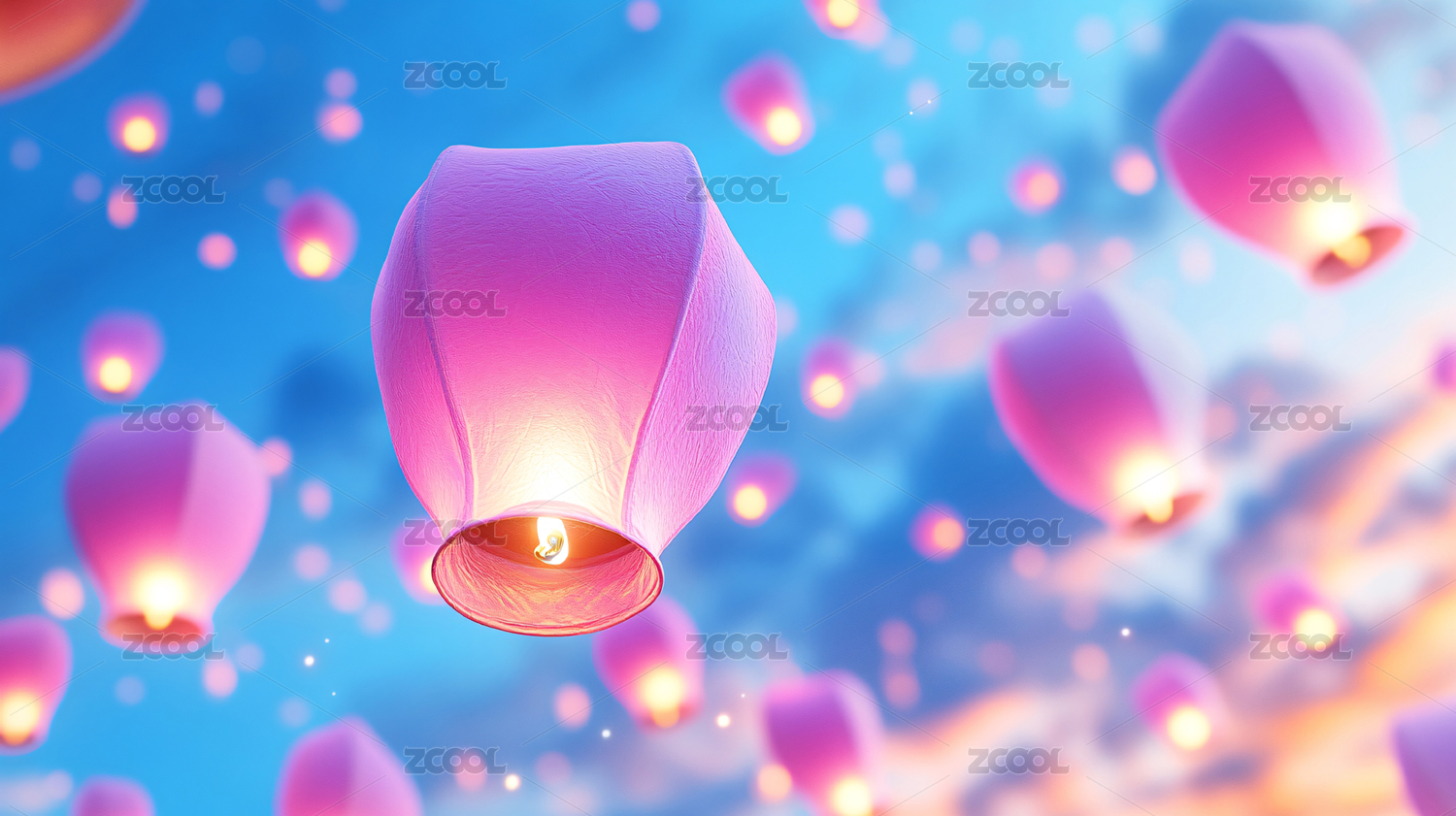 中秋节孔明灯元宵节灯笼思念团圆概念插画