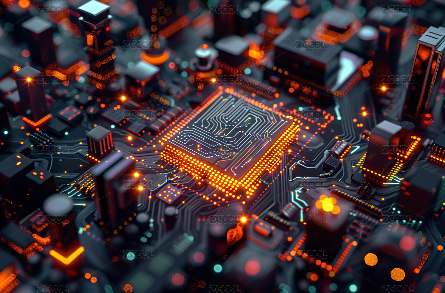 科技感十足的电路板特写