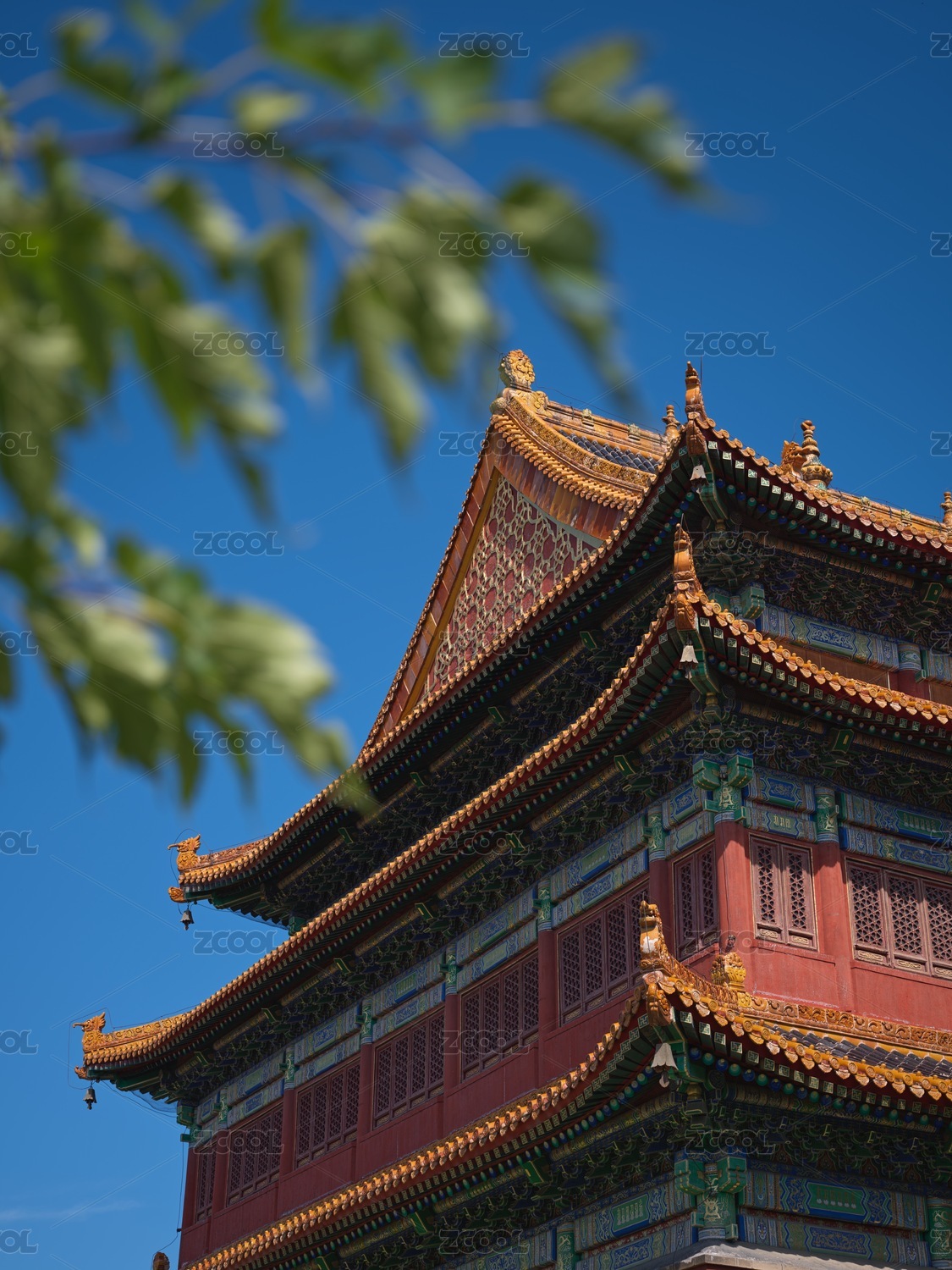 蓝天下阳光中的故宫东雁翅楼屋顶房檐特写