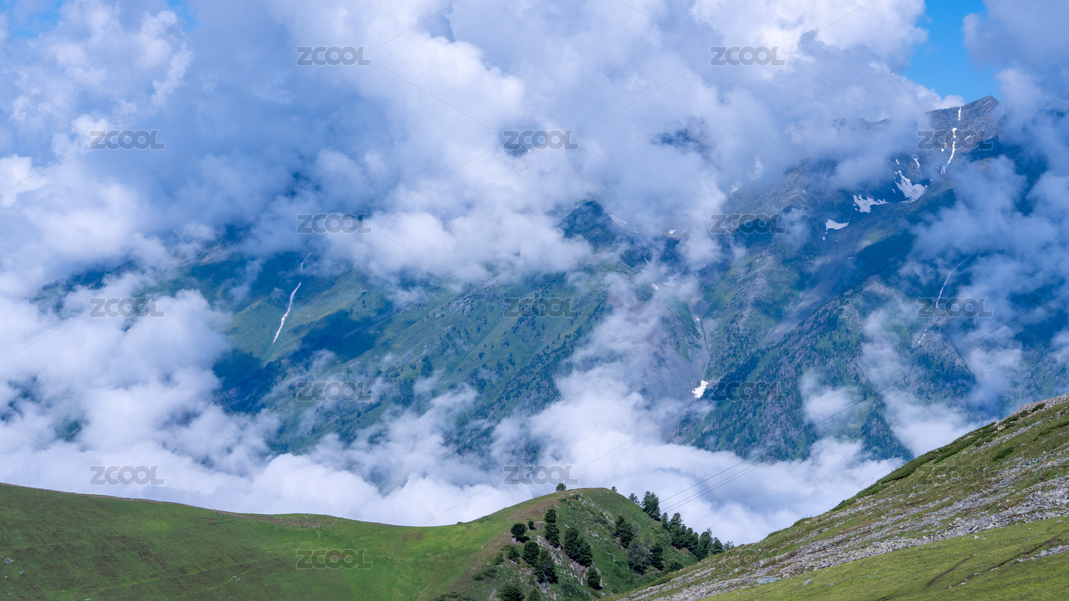 中国云南昭通大山包高山沟壑白云缭绕风景