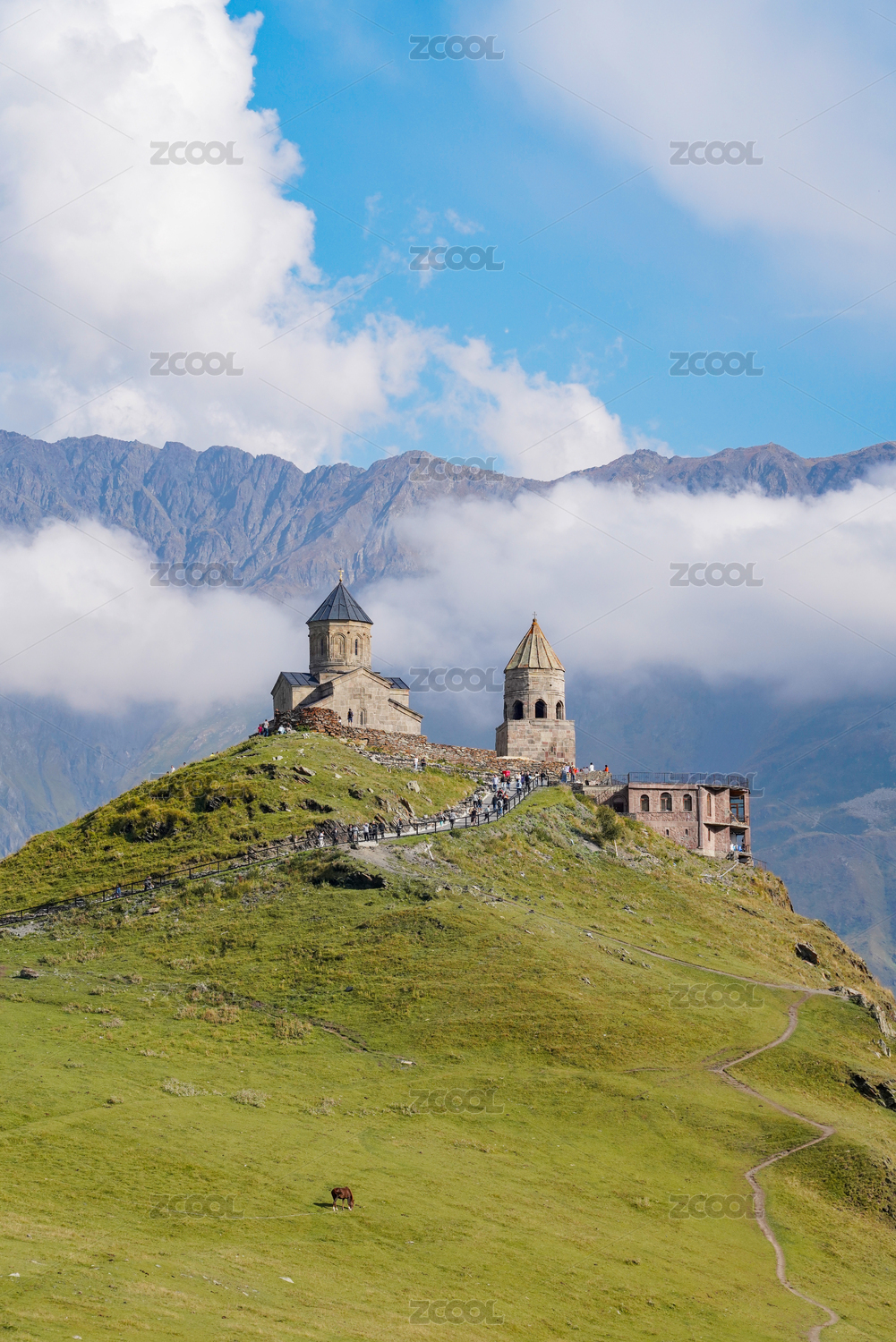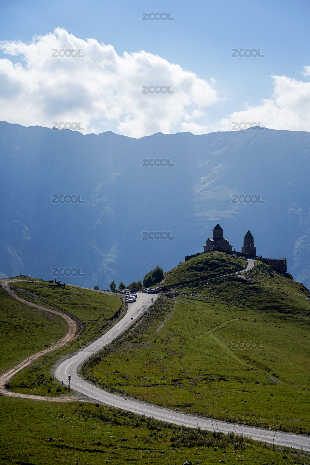 格鲁吉亚,卡兹别克,高加索,景点,风光,夏季,无人,户外,自然,旅游目的地