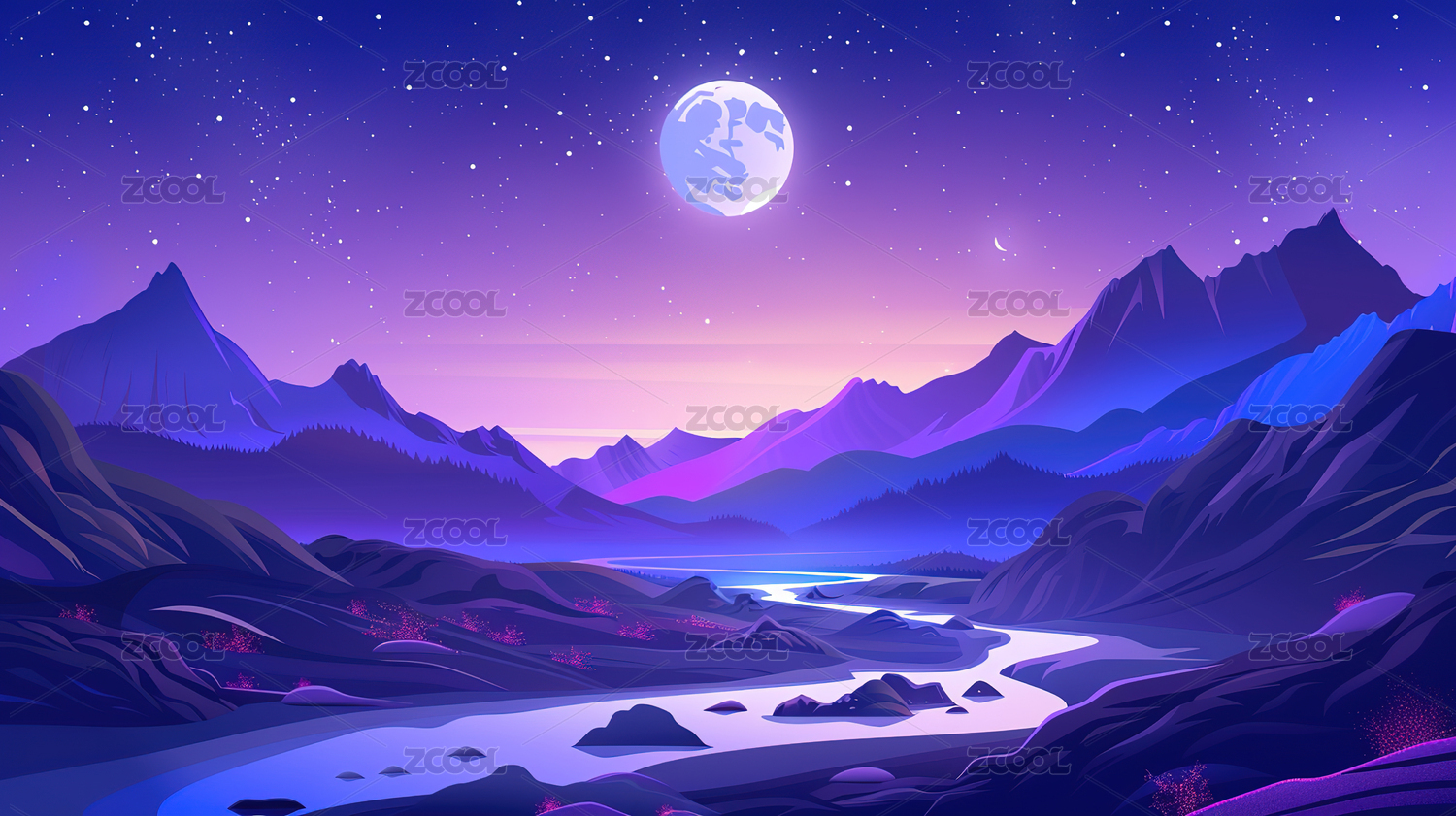 手绘唯美的抽象艺术感夜晚天空风景插画