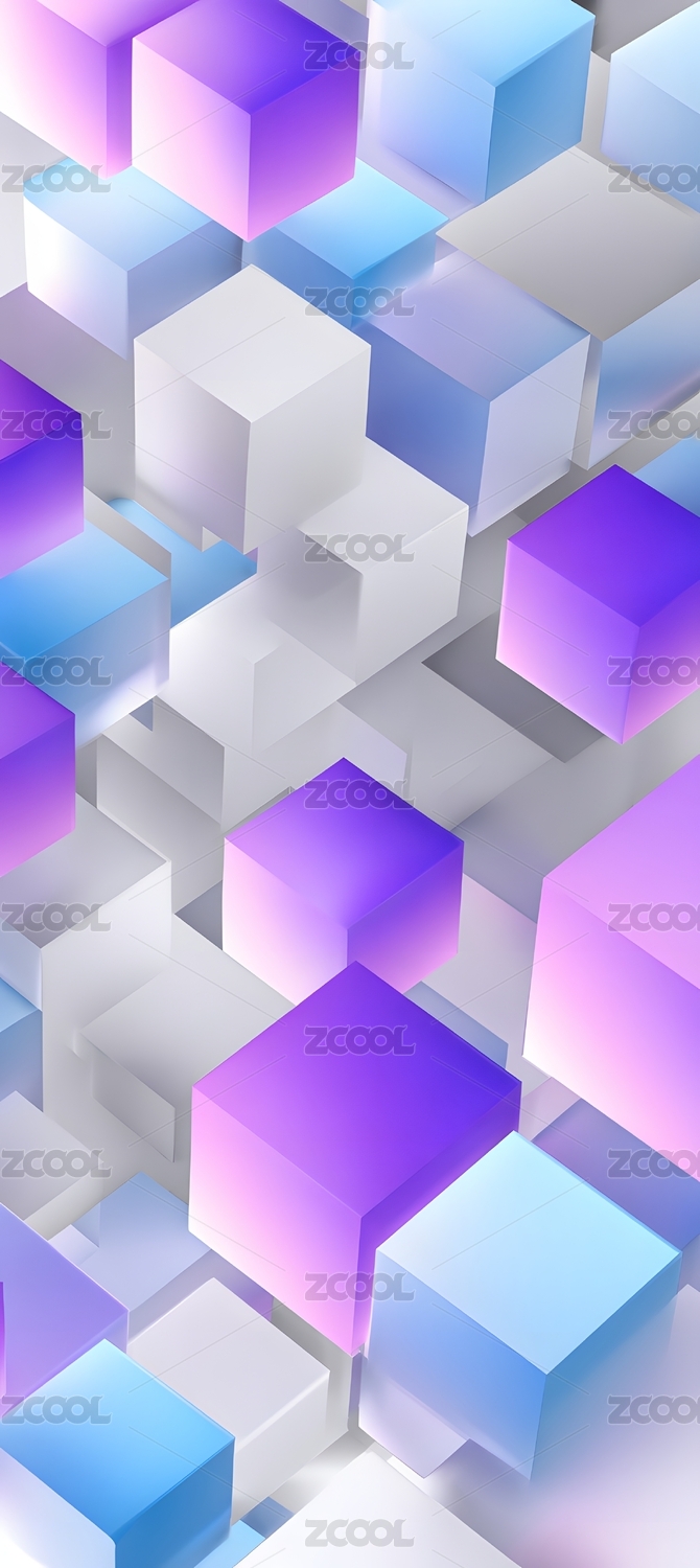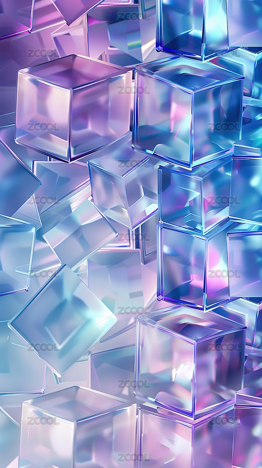 梦幻透明立方体堆叠艺术效果图