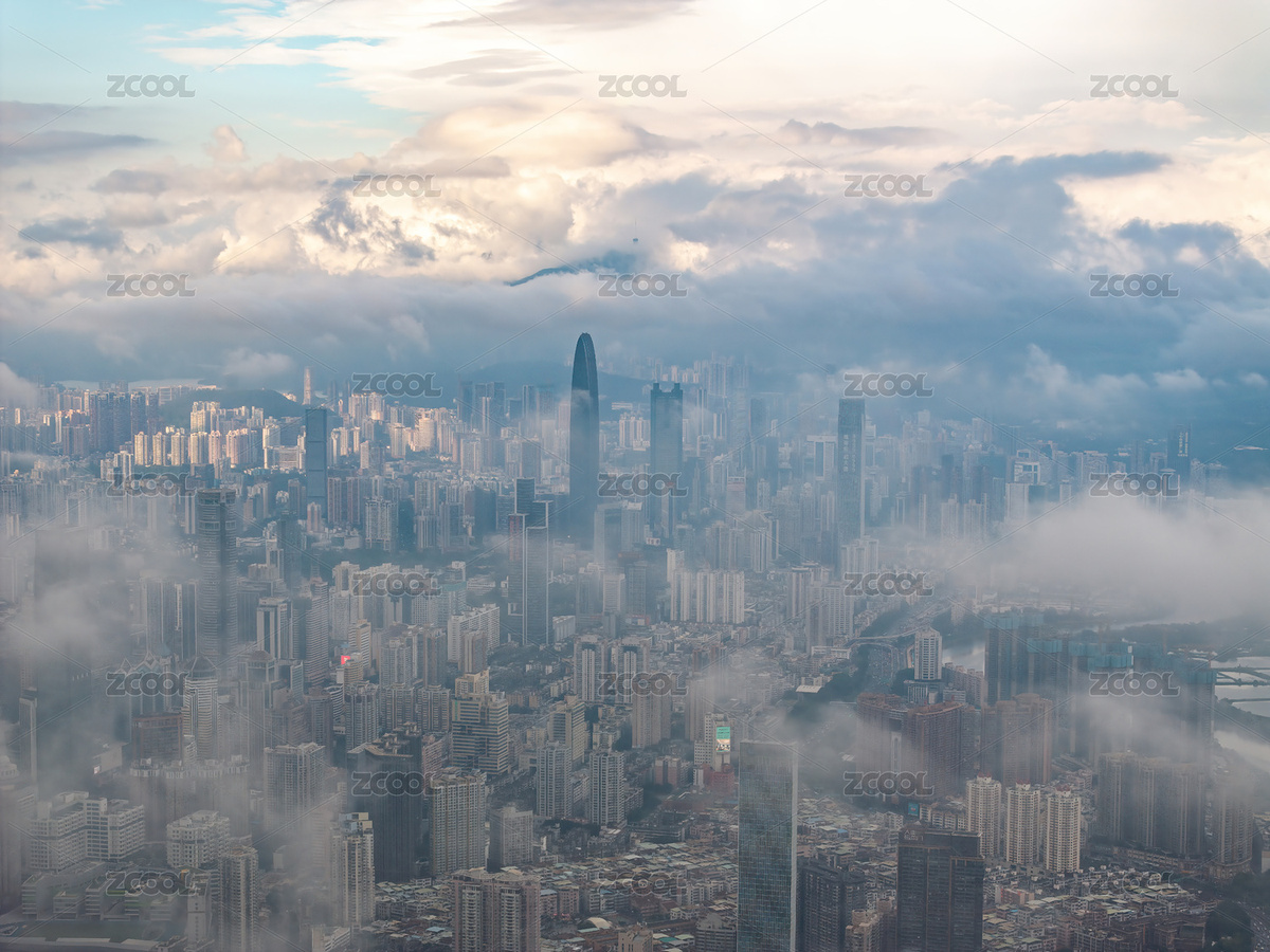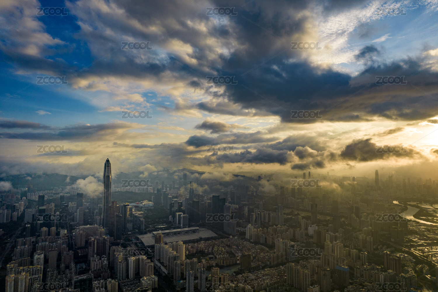 深圳,福田,CBD,平安大厦,晴天,航拍,大湾区,城市,灯光,夜景