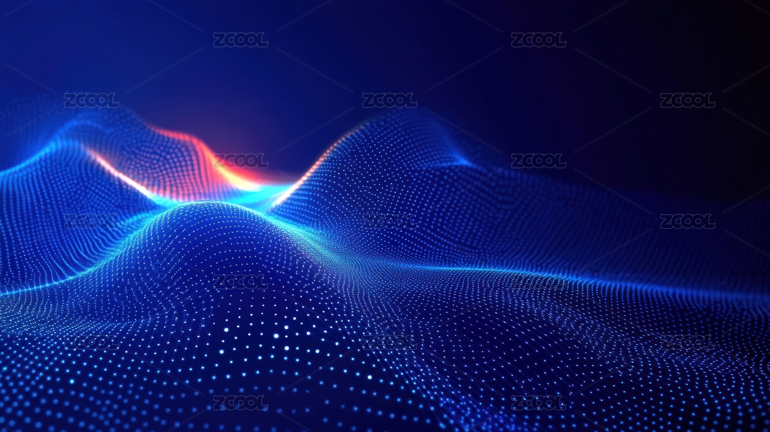 蓝色光点粒子三维波浪背景图