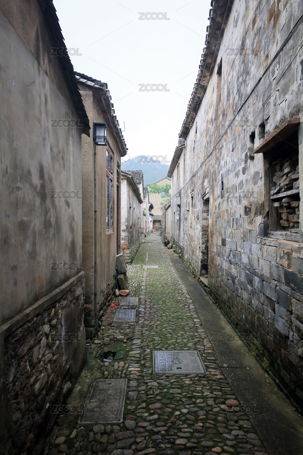 中国浙江杭州富阳龙门古镇乡村山村古老巷子