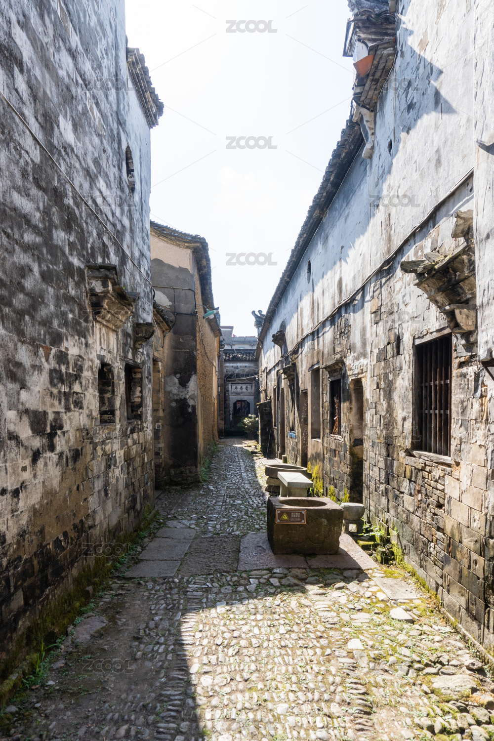 徽派民居小巷,中国安徽黟县卢村木雕楼景区