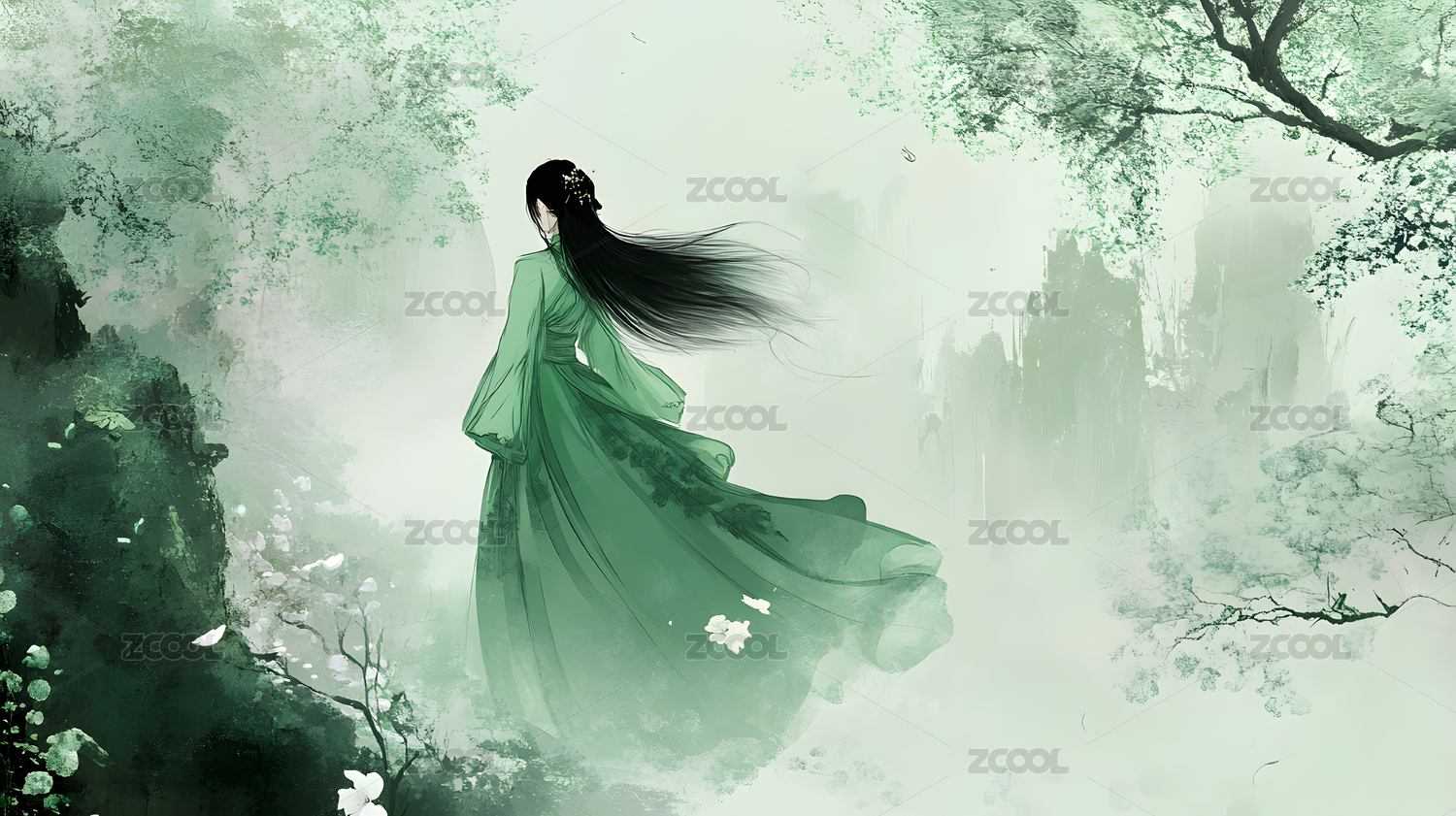 水墨画中的少女
