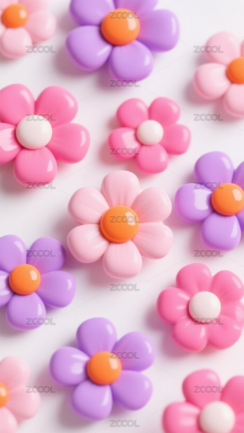 3d花卉工艺壁纸。浅色背景中的橙色绿色和