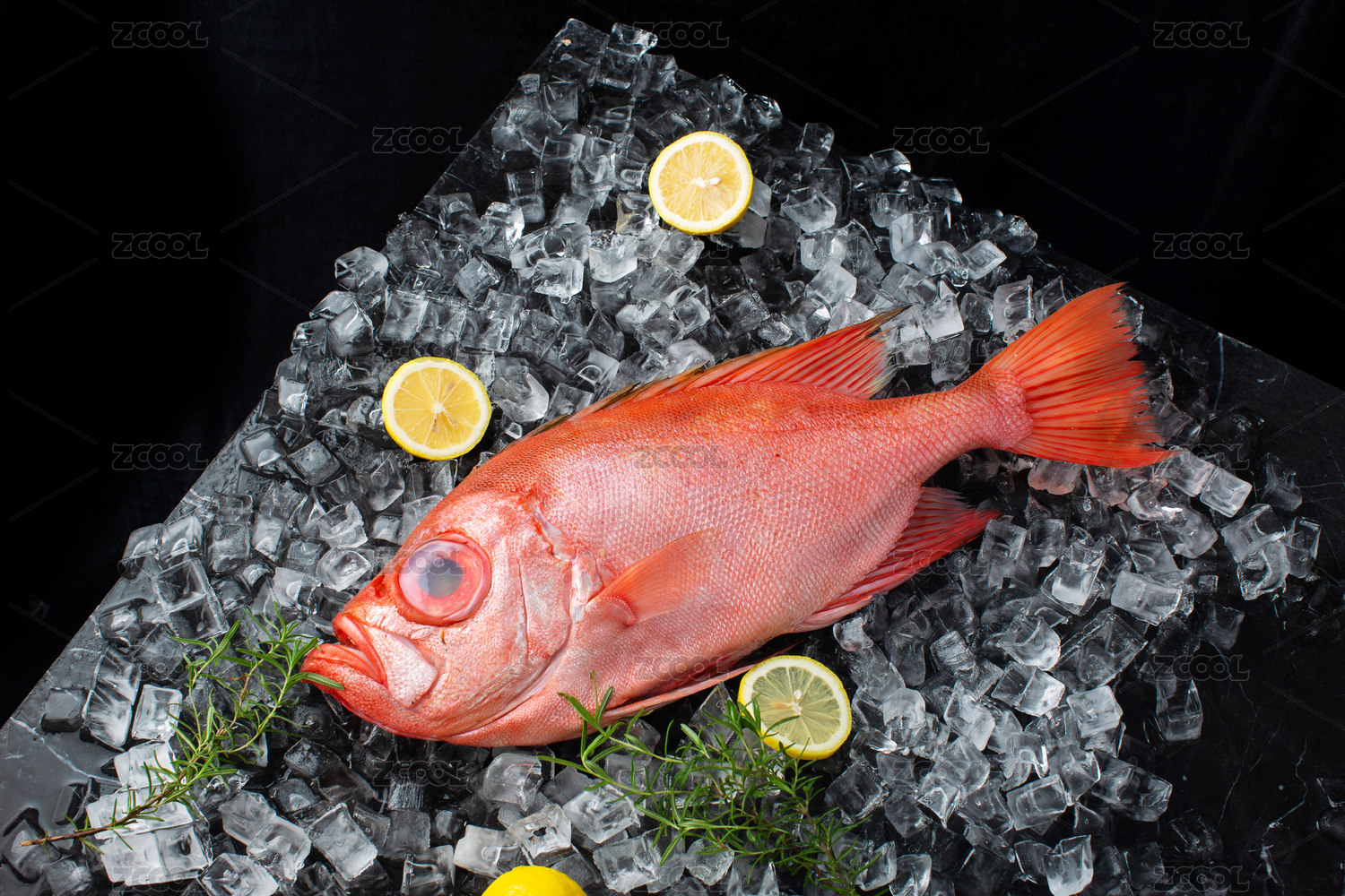 冰块上的新鲜刺身食材深海大眼红鲷鱼